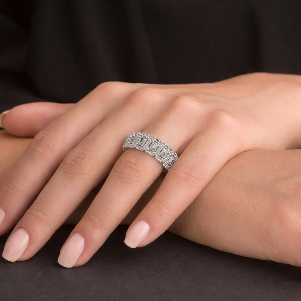Inel cu diamante Emerald de 2.83 ct si diamante laterale de 1.64 ct