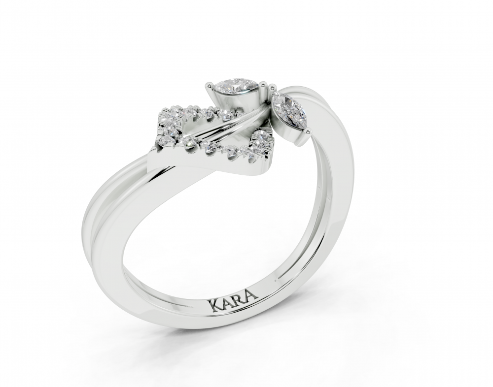 Inel din aur alb de 14K, cu diamante Marquise Cut de 0.07 ct si diamante rotunde de 0.08 ct. Greutatea inelului este de aproximativ 3,00 grame.