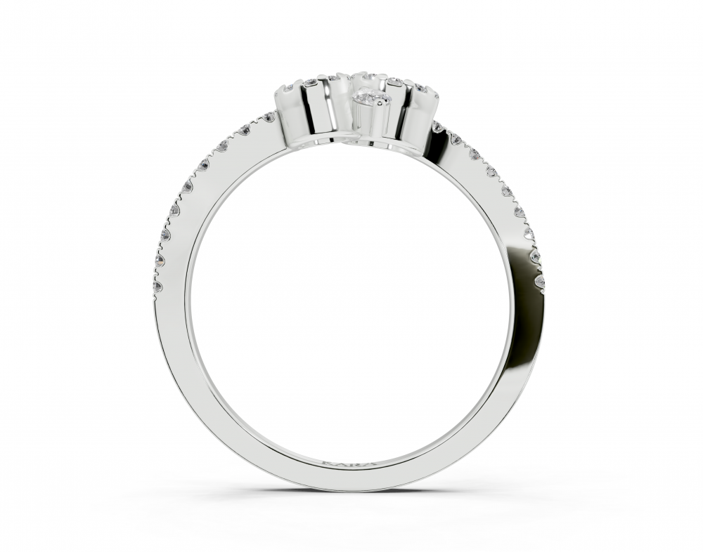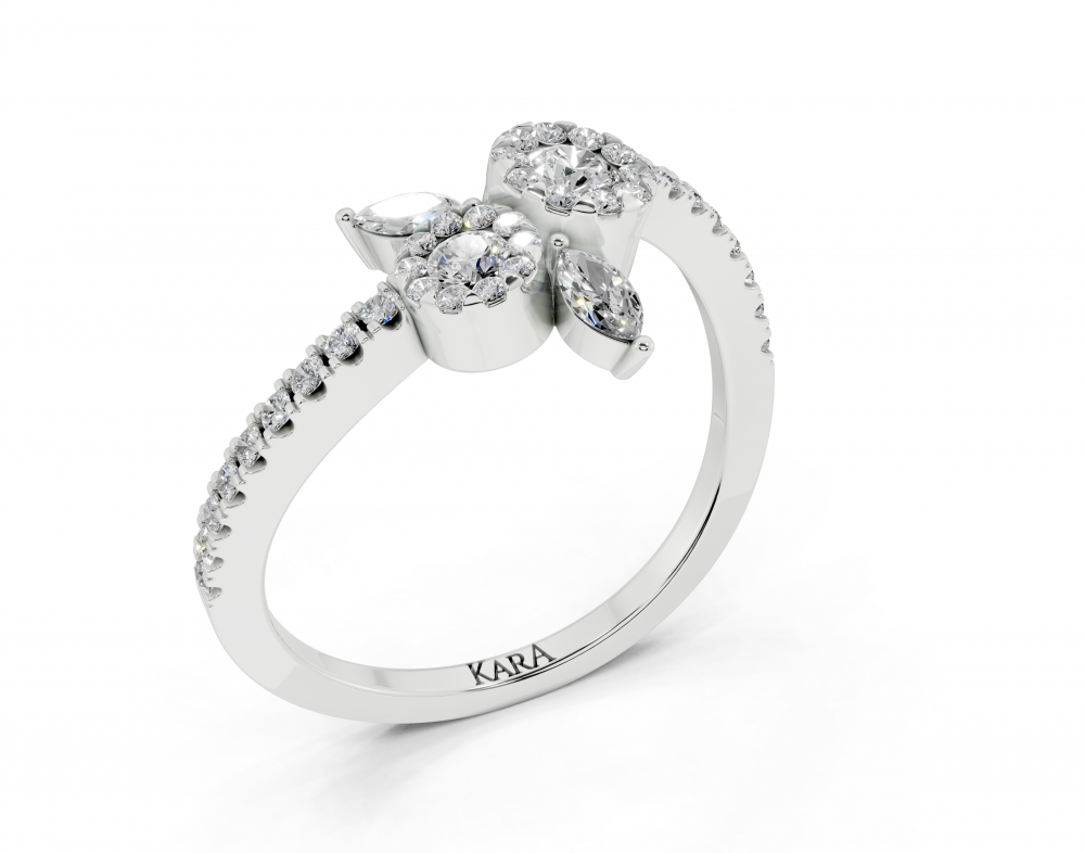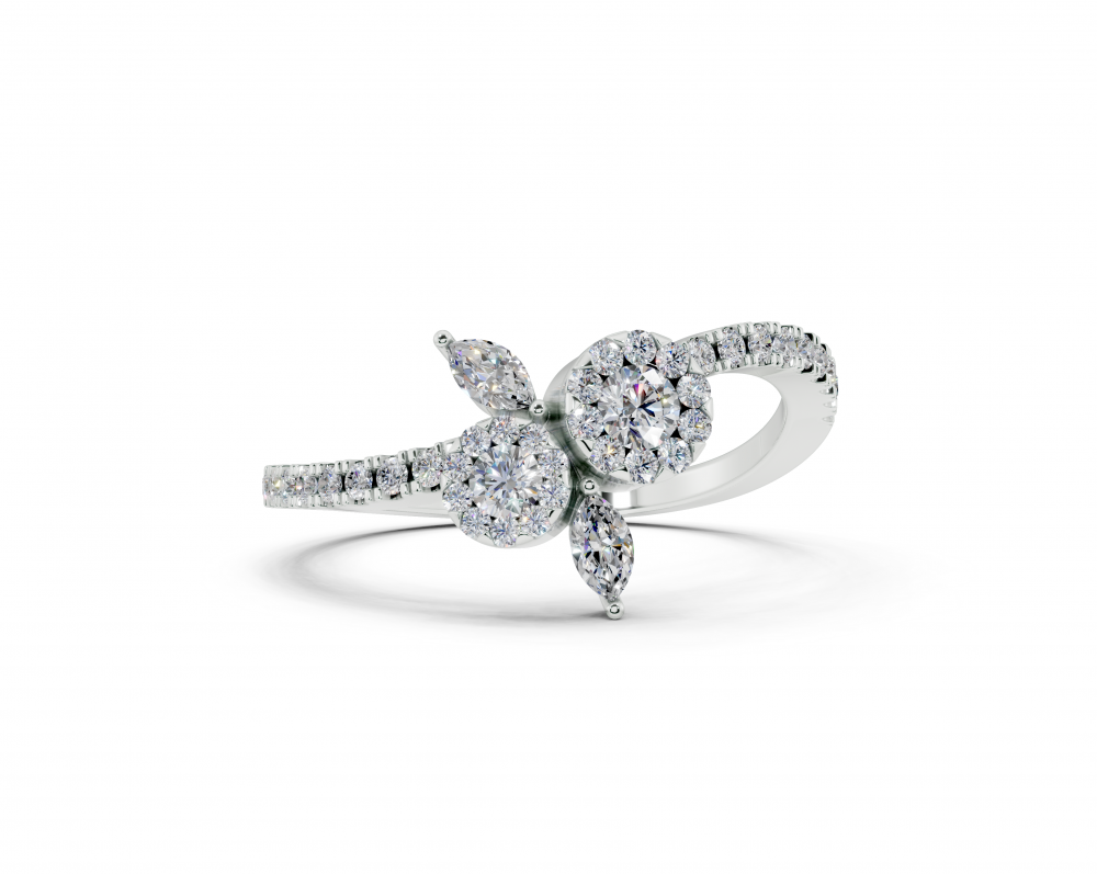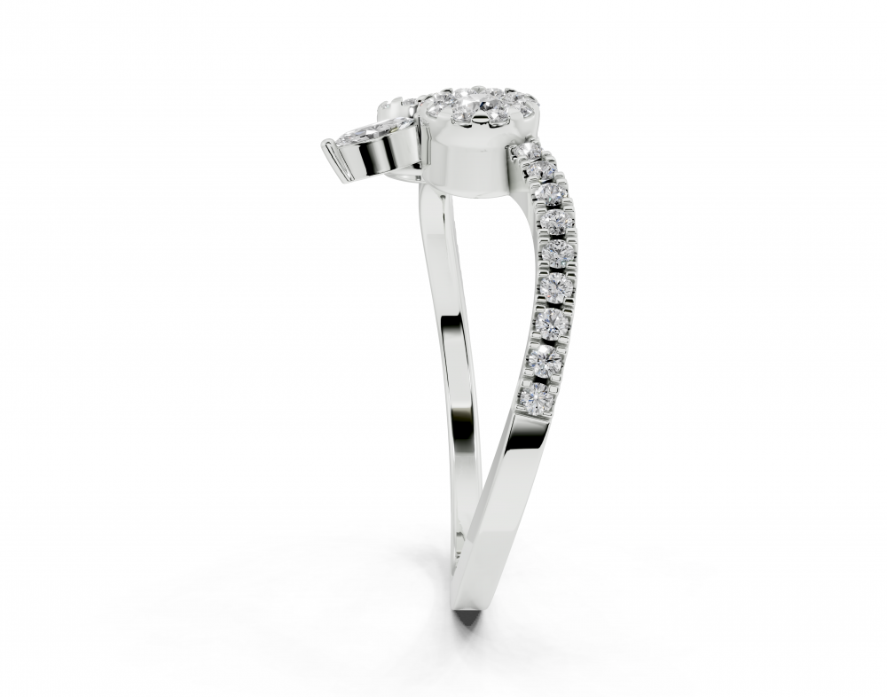 Inel din aur alb de 14K, cu diamante Marquise Cut de 0.07 ct si diamante rotunde de 0.32 ct. Greutatea inelului este de aproximativ 3,00 grame.