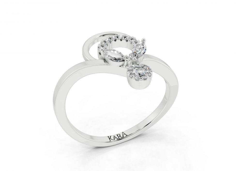 Inel din aur alb de 14K, cu diamante Marquise Cut de 0.07ct si diamante rotunde de 0.11ct. Greutatea inelului este de aproximativ 2.50 grame.