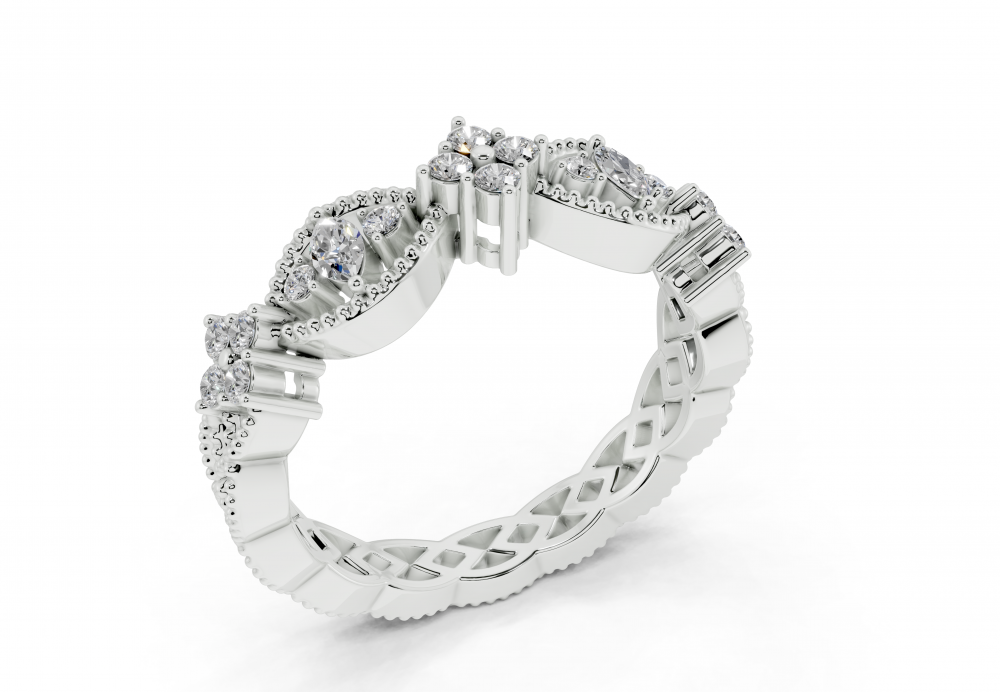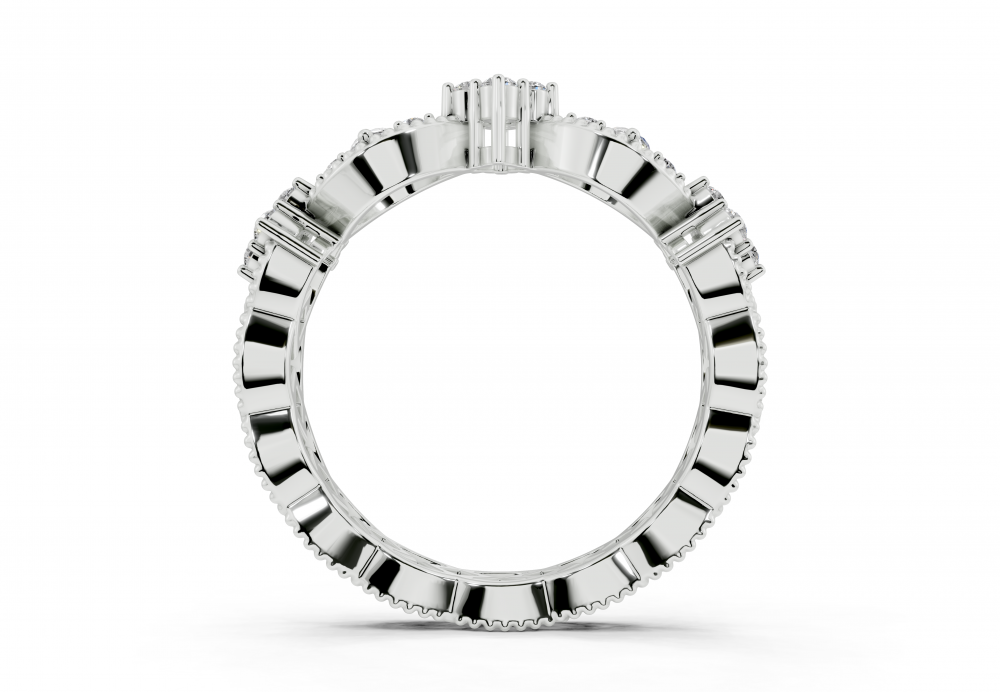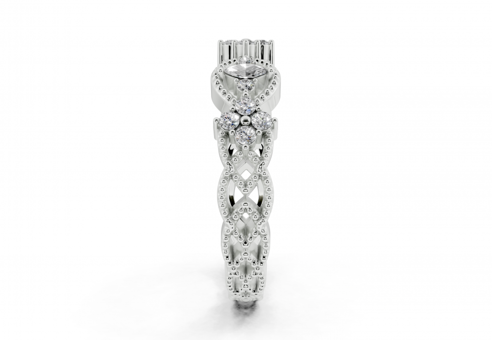 Inel din aur alb de 14K, cu diamante Marquise de 0.07ct. si diamante Rotunde de 0.20ct. Greutatea inelului este de aproximativ 4 grame.