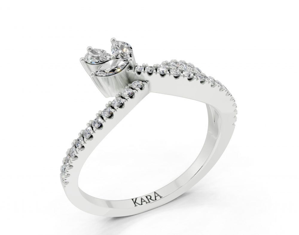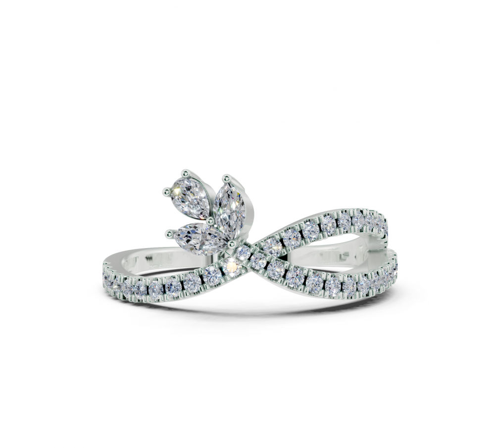 Inel din aur alb de 14K, cu diamante Marquise Cut de 0.07ct, un diamant Pear Cut de 0.05ct si diamante rotunde de 0.23 ct. Greutatea inelului este de aproximativ 2.50 grame. Inelul se poate face pe comanda si din aur de 18K. Putem modifica design-ul in functie de bugetul...