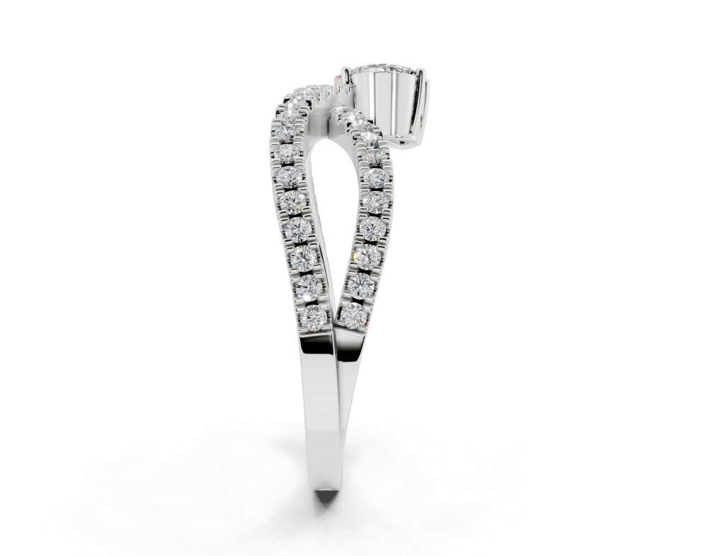 Inel din aur alb de 14K, cu diamante Marquise Cut de 0.07ct, un diamant Pear Cut de 0.05ct si diamante rotunde de 0.23 ct. Greutatea inelului este de aproximativ 2.50 grame.