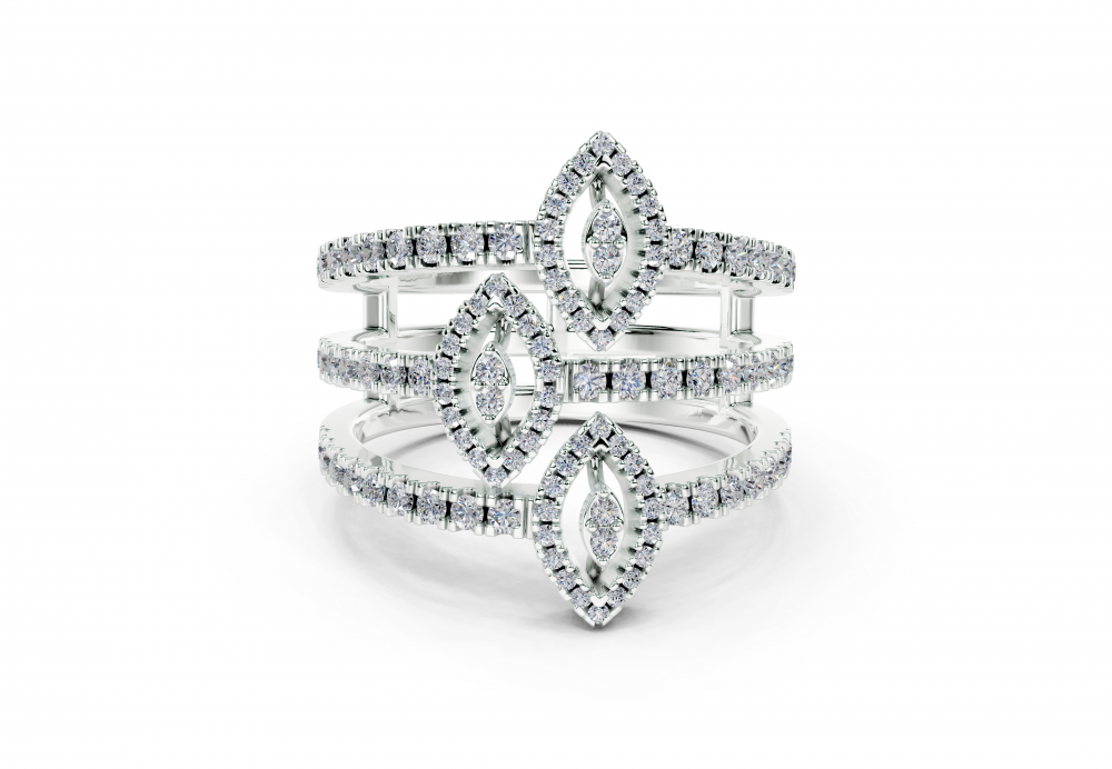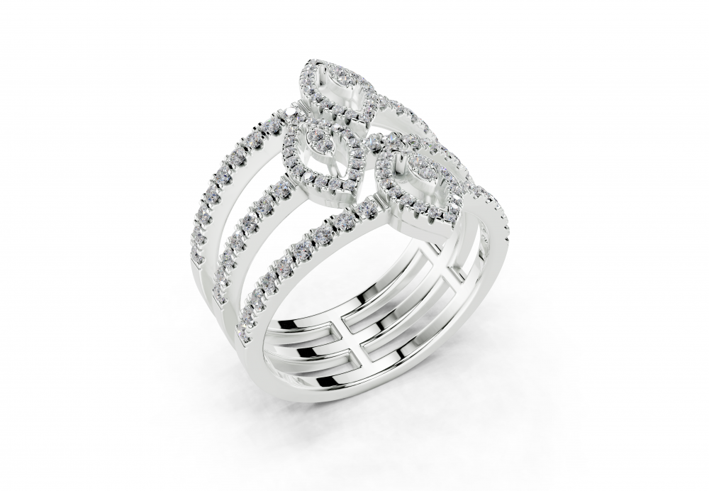 Inel din aur alb de 14K, cu diamante Marquise Cut de 0.09ct si diamante rotunde de 0.57ct. Greutatea inelului este de aproximativ 4.50 grame. Inelul se poate face pe comanda si din aur de 18K. Putem modifica design-ul in functie de bugetul dumneavoastra.