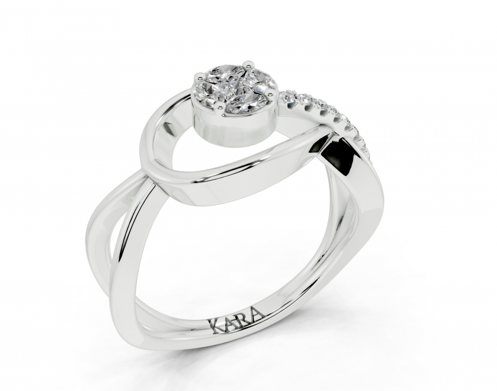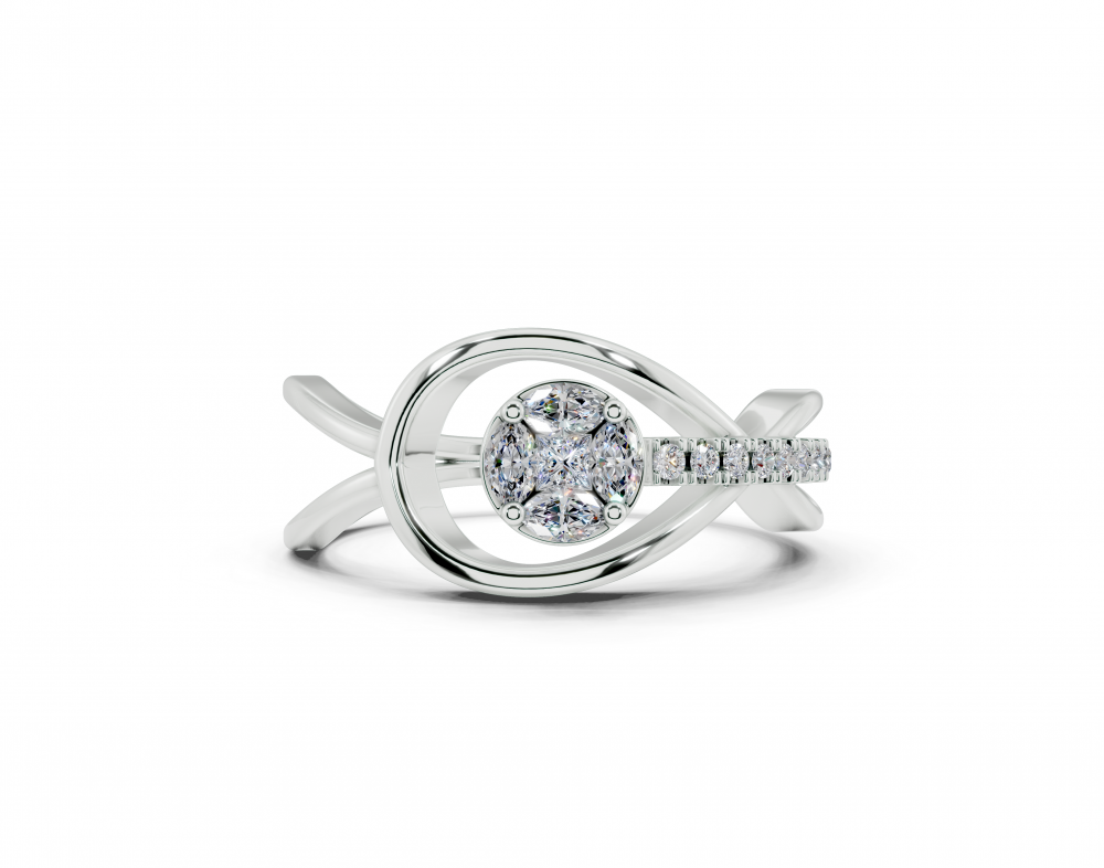 Inel din aur alb de 14K, cu diamante Marquise Cut de 0.10ct, diamante Pear Cut de 0.04ct si diamante rotunde de 0.07ct. Greutatea inelului este de aproximativ 3.50 grame. Inelul se poate face pe comanda si din aur de 18K. Putem modifica design-ul in functie de bugetul dumneavoastra.