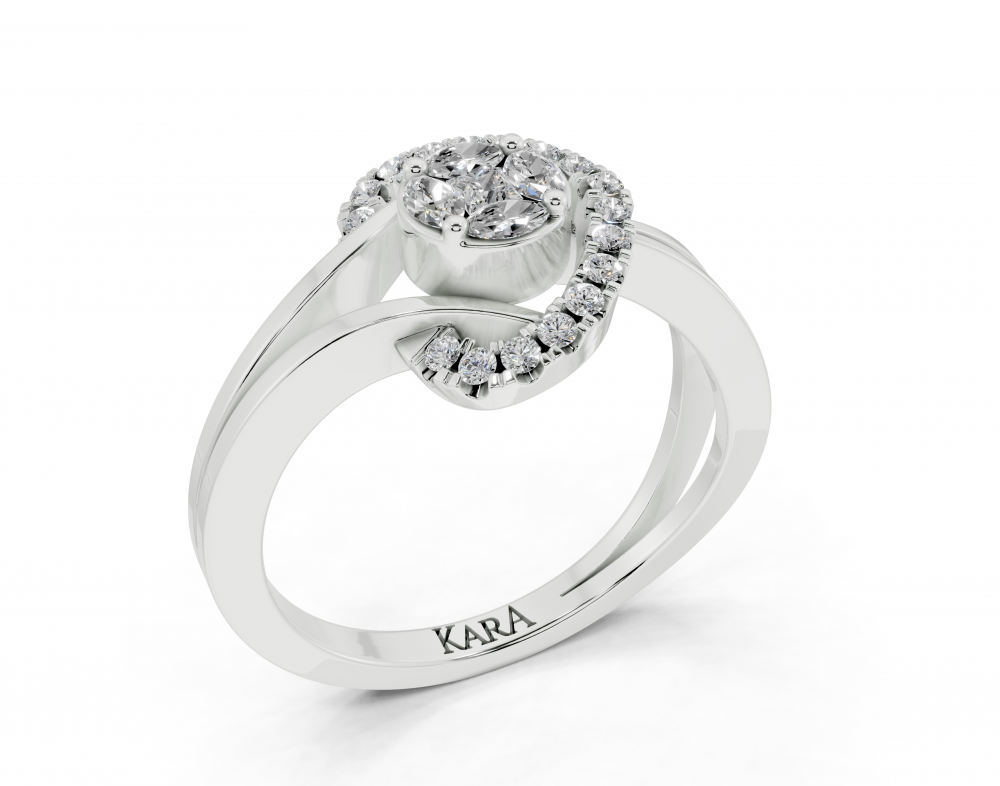 Inel din aur alb de 14K, cu diamante Marquise Cut de 0.10ct, diamante Princess Cut de 0.04ct si diamante rotunde de 0.12ct. Greutatea inelului este de aproximativ 3.00 grame. Inelul se poate face pe comanda si din aur de 18K. Putem modifica design-ul in functie de bugetul dumneavoastra.