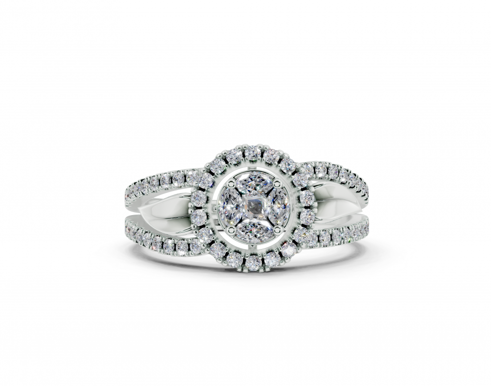 Inel din aur alb de 14K, cu diamante Marquise Cut de 0.10ct, diamante Princess Cut de 0.05ct si diamante rotunde de 0.30ct. Greutatea inelului este de aproximativ 3.50 grame. Inelul se poate face pe comanda si din aur de 18K. Putem modifica design-ul in functie de bugetul dumneavoastra.