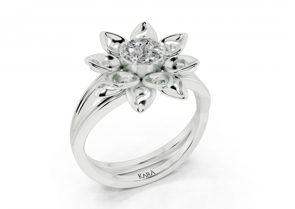 Inel din aur alb de 14K, cu diamante Marquise Cut de 0.10ct si diamante Princess Cut de 0.05ct. Greutatea inelului este de aproximativ 3.50 grame. Inelul se poate face pe comanda si din aur de 18K. Putem modifica design-ul in functie de bugetul dumneavoastra.