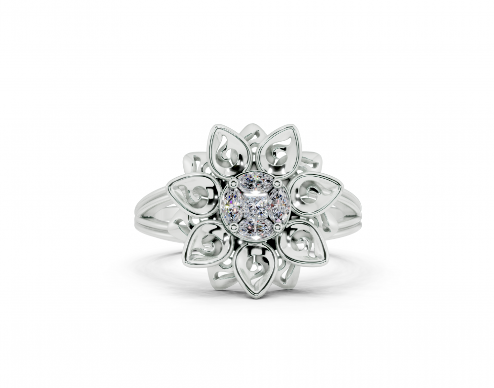 Inel din aur alb de 14K, cu diamante Marquise Cut de 0.10ct si diamante Princess Cut de 0.05ct. Greutatea inelului este de aproximativ 3.50 grame.