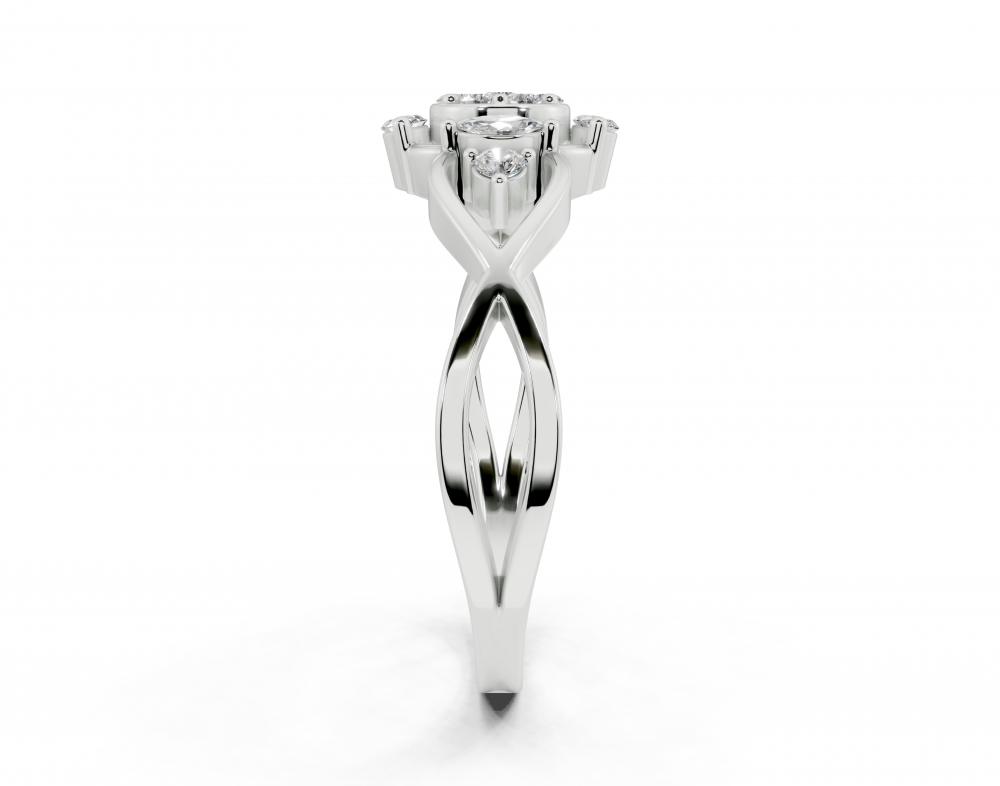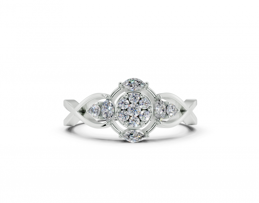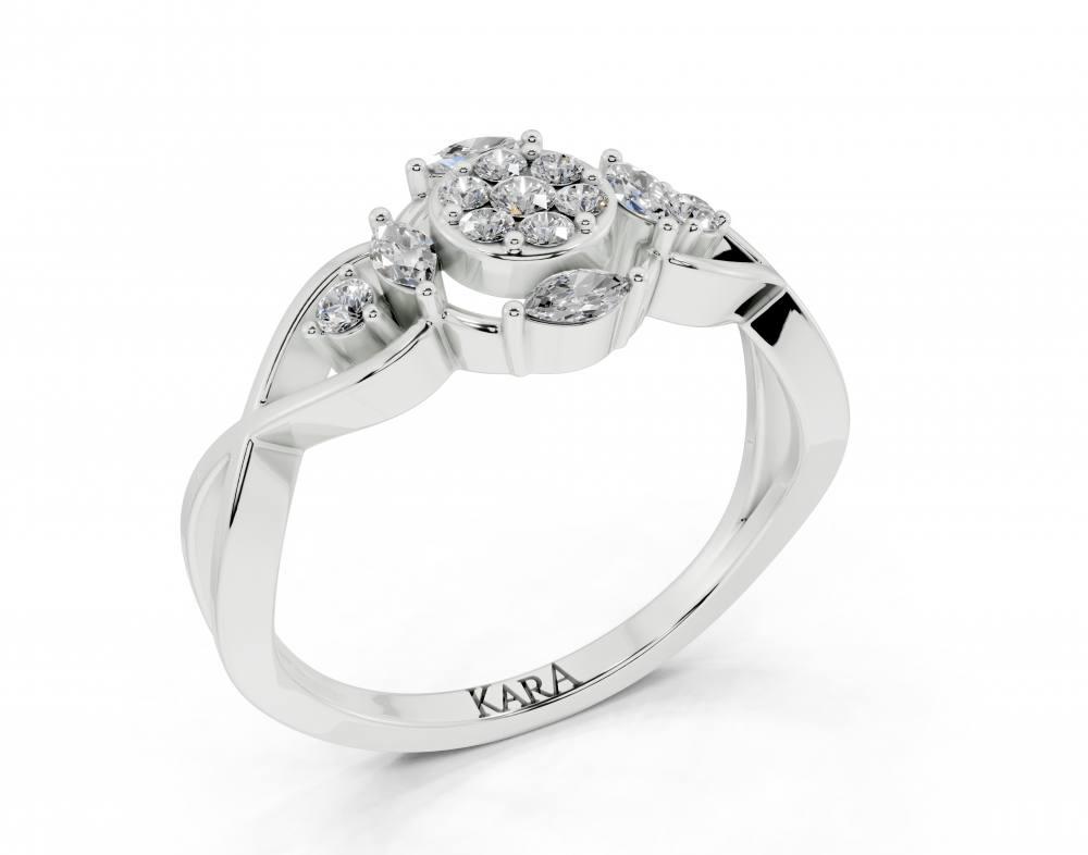 Inel din aur alb de 14K, cu diamante Marquise Cut de 0.10ct si diamante rotunde de 0.12ct. Greutatea inelului este de aproximativ 2.50 grame.