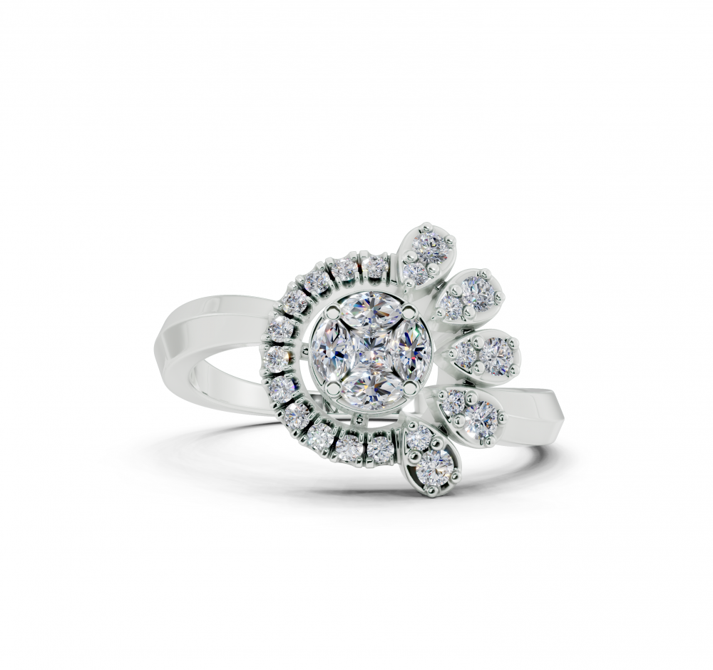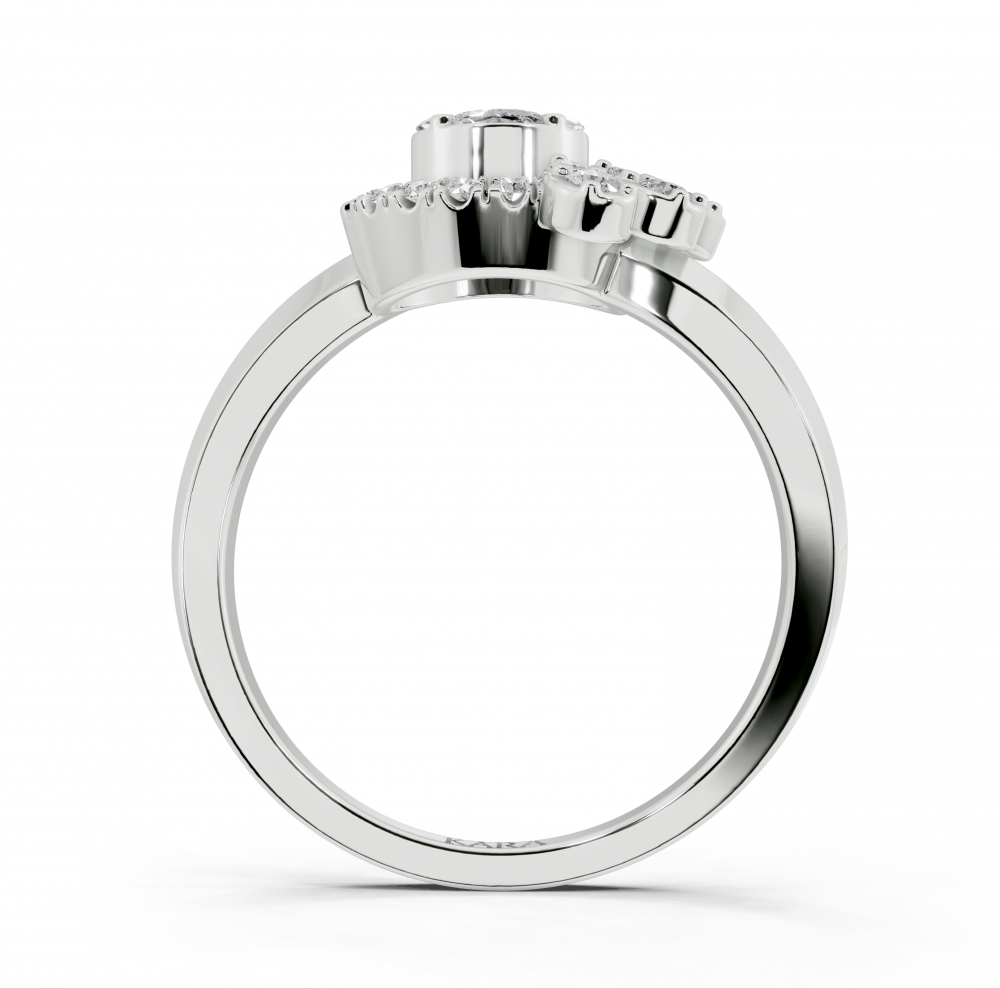 Inel din aur alb de 14K, cu diamante Marquise Cut de 0.10ct, un diamant Princess Cut de 0.05ct si diamante rotunde de 0.19ct. Greutatea inelului este de aproximativ 3.50 grame. Inelul se poate face pe comanda si din aur de 18K. Putem modifica design-ul in functie de bugetul dumneavoastra.