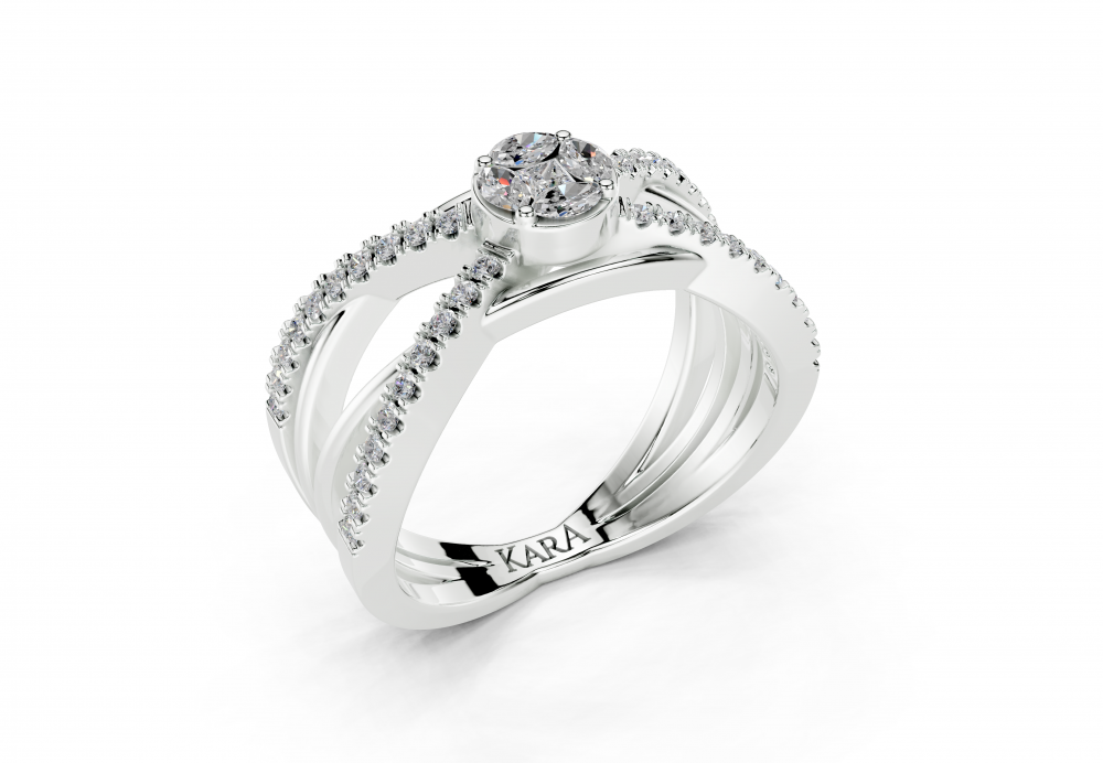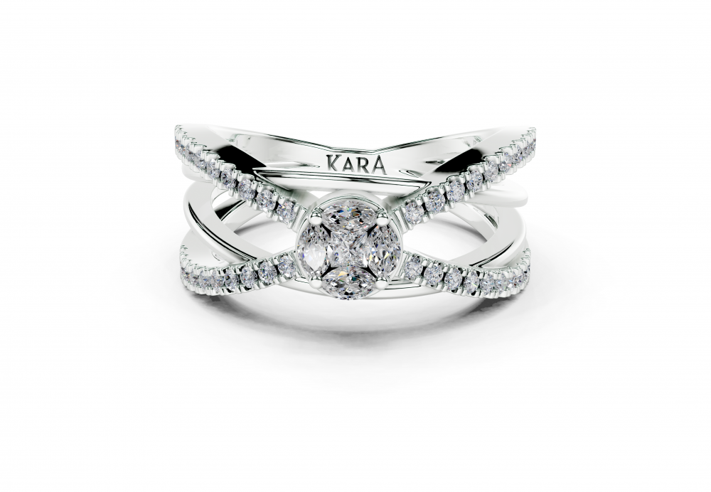 Inel din aur alb de 14K, cu diamante Marquise Cut de 0.10ct, un diamant Pear Cut de 0.05ct si diamante rotunde de 0.23ct. Greutatea inelului este de aproximativ 6.50 grame. Inelul se poate face pe comanda si din aur de 18K. Putem modifica design-ul in functie de bugetul dumneavoastra.