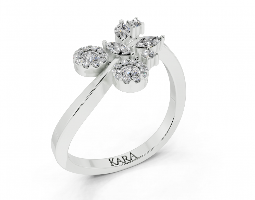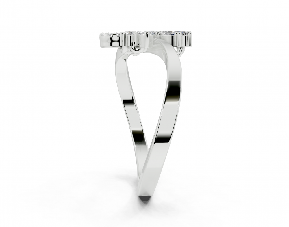 Inel din aur alb de 14K, cu diamante Marquise Cut de 0.11 ct si diamante rotunde de 0.17 ct. Greutatea inelului este de aproximativ 1,50 grame.