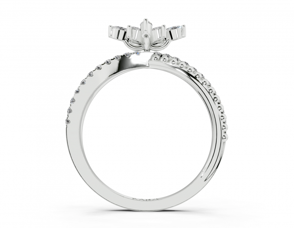 Inel din aur alb de 14K, cu diamante Marquise Cut de 0.13ct si diamante rotunde de 0.16ct. Greutatea inelului este de aproximativ 3 grame.