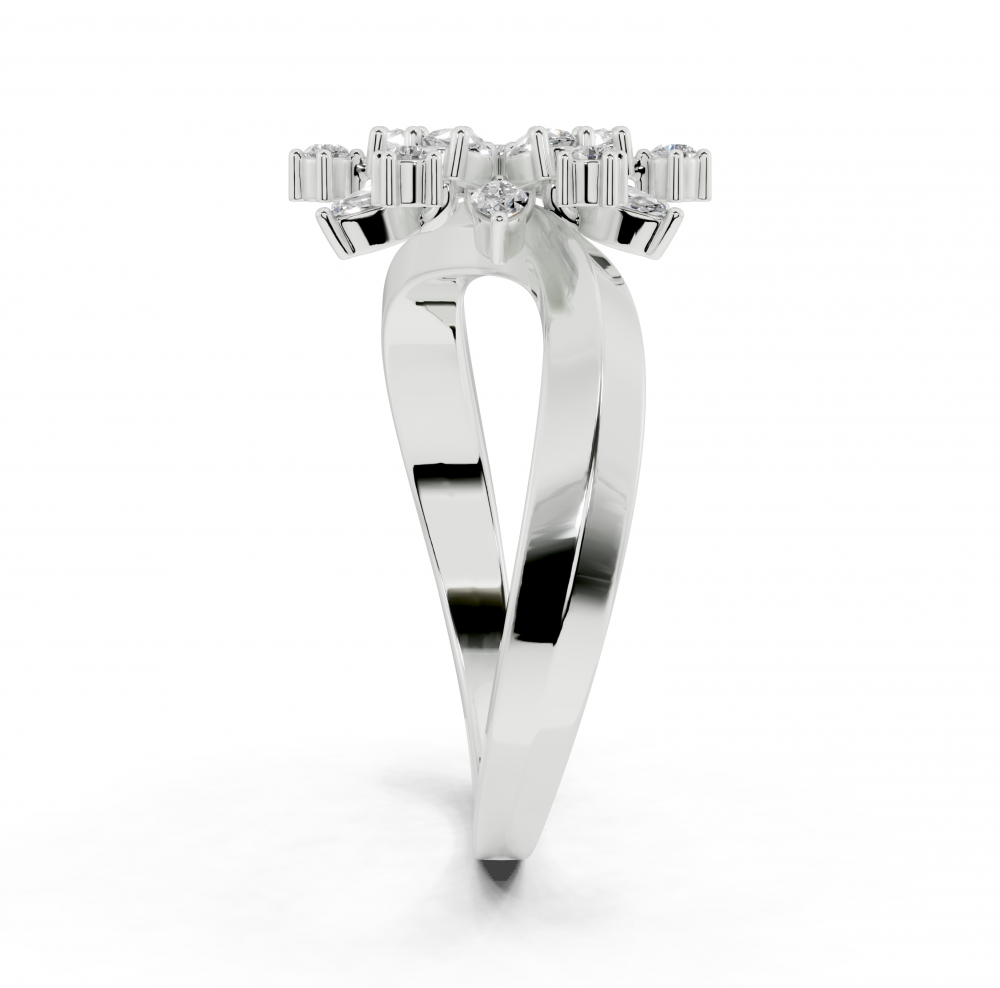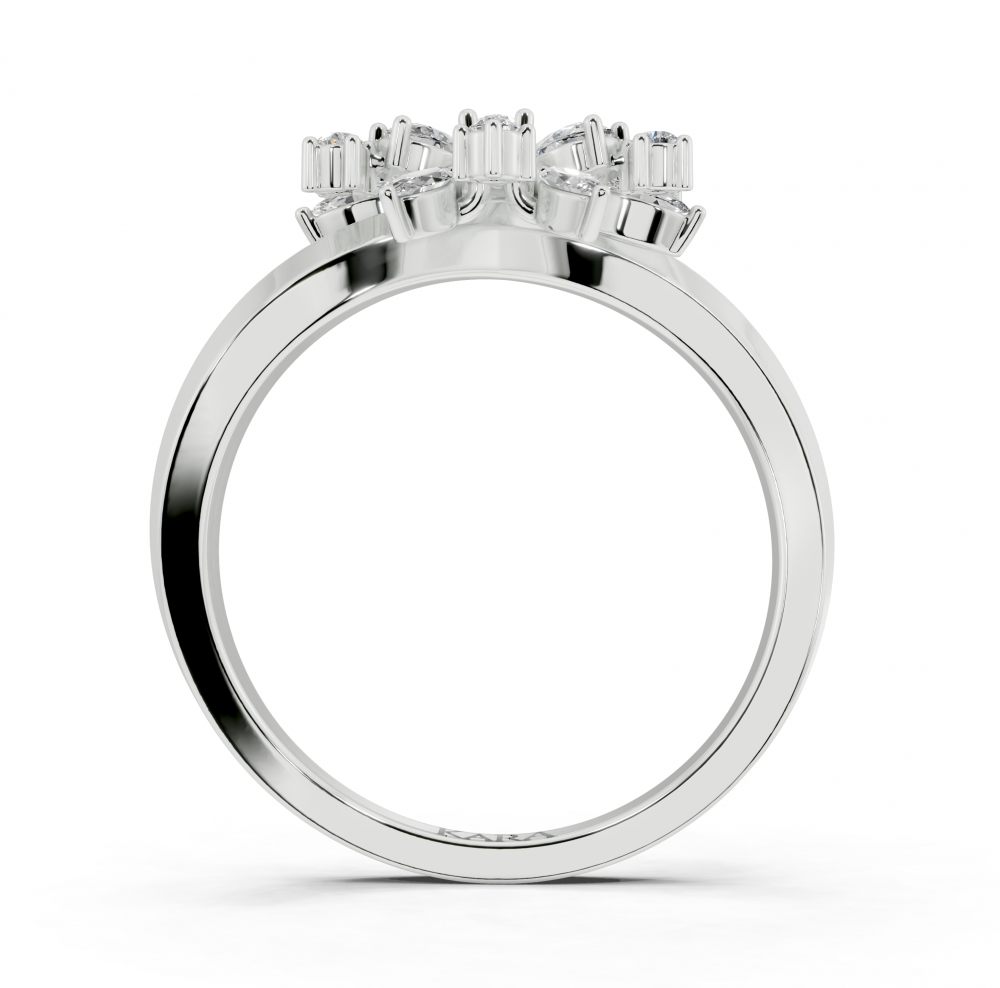 Inel din aur alb de 14K, cu diamante Marquise Cut de 0.14 ct, diamante Pear Cut de 0.31 ct si diamante rotunde de 0.08 ct. Greutatea inelului este de aproximativ 3.30 grame.