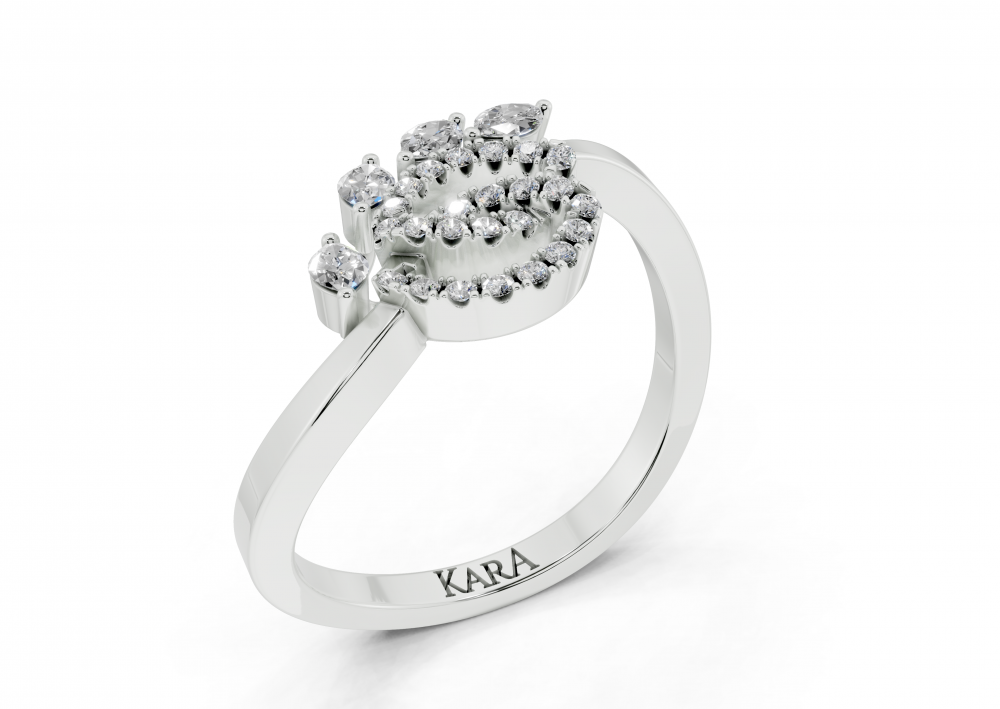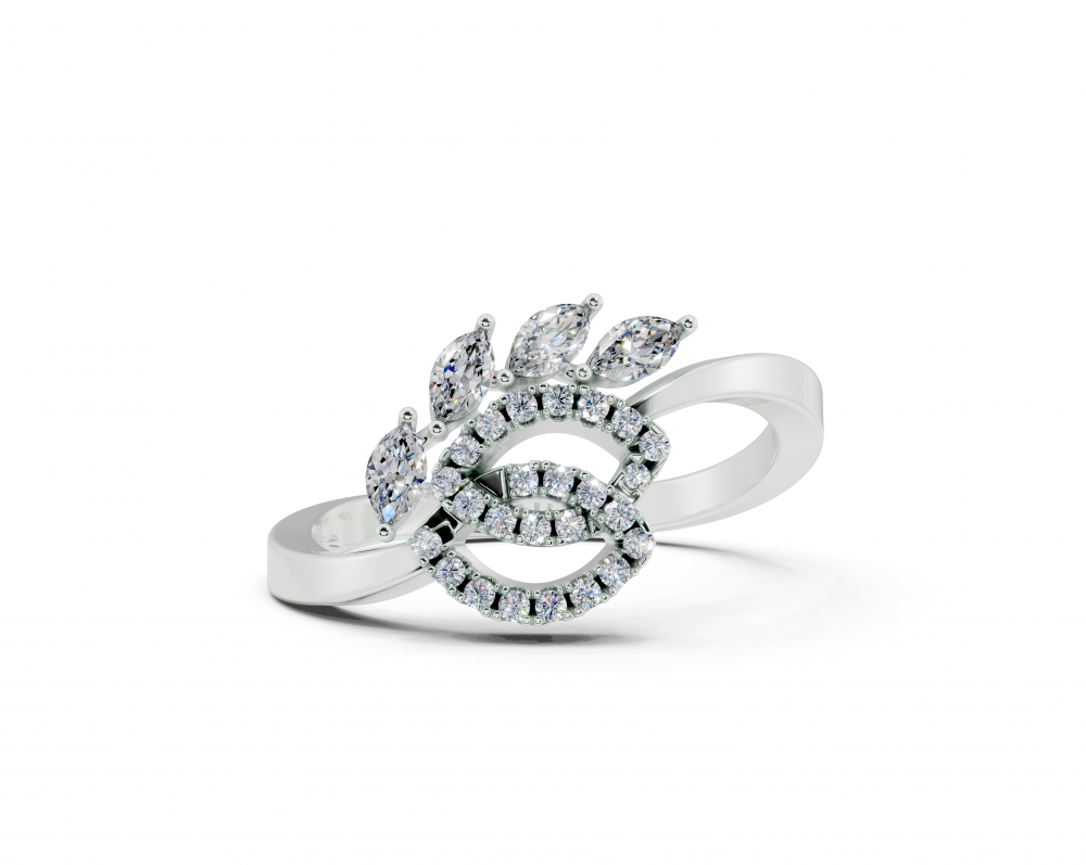 Inel din aur alb de 14K, cu diamante Marquise Cut de 0.15 ct si diamante rotunde de 0.09 ct. Greutatea inelului este de aproximativ 2,50 grame.