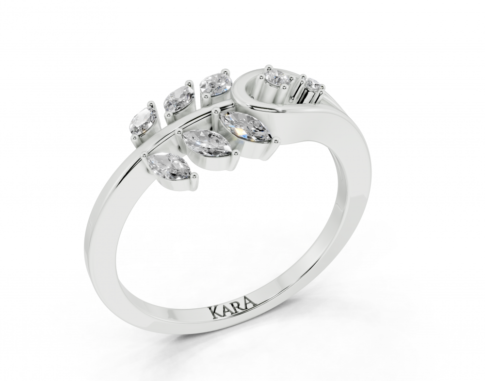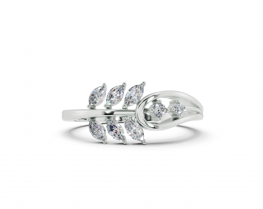 Inel din aur alb de 14K, cu diamante Marquise Cut de 0.18 ct si diamante rotunde de 0.03 ct. Greutatea inelului este de aproximativ 2,00 grame.