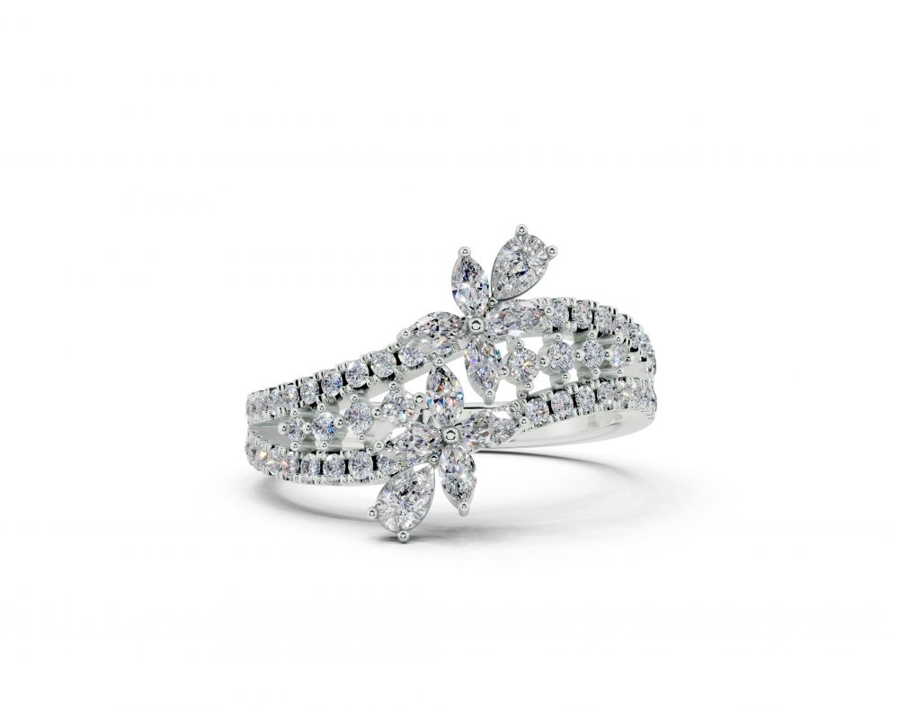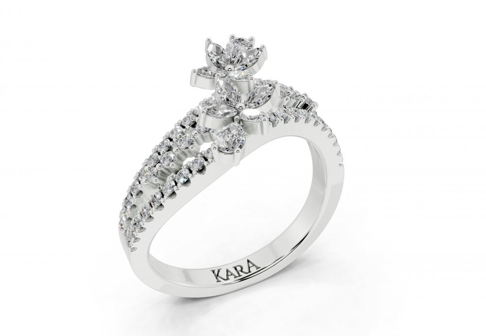 Inel din aur alb de 14K, cu diamante Marquise Cut de 0.18ct, Pear Cut de 0.10ct si diamante rotunde de 0.46ct. Greutatea inelului este de aproximativ 4.50 grame. Accesati "Specificatii" pentru mai multe detalii acest produs.
