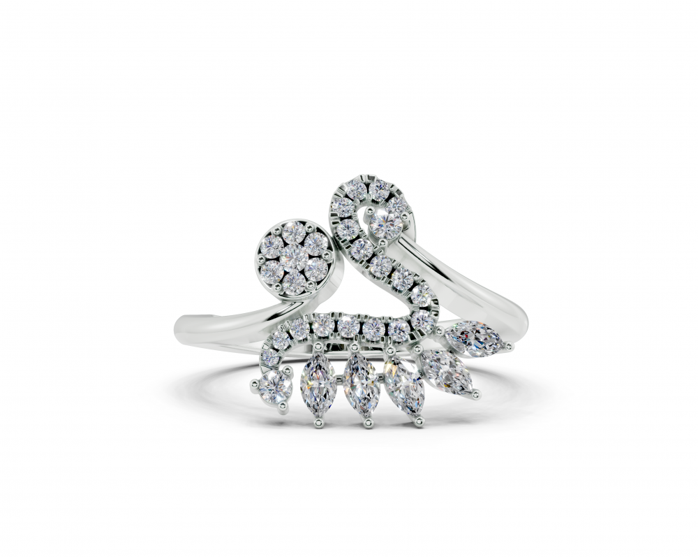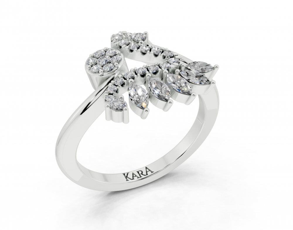 Inel din aur alb de 14K, cu diamante Marquise Cut de 0.19 ct si diamante rotunde de 0.20 ct. Greutatea inelului este de aproximativ 3,30 grame.