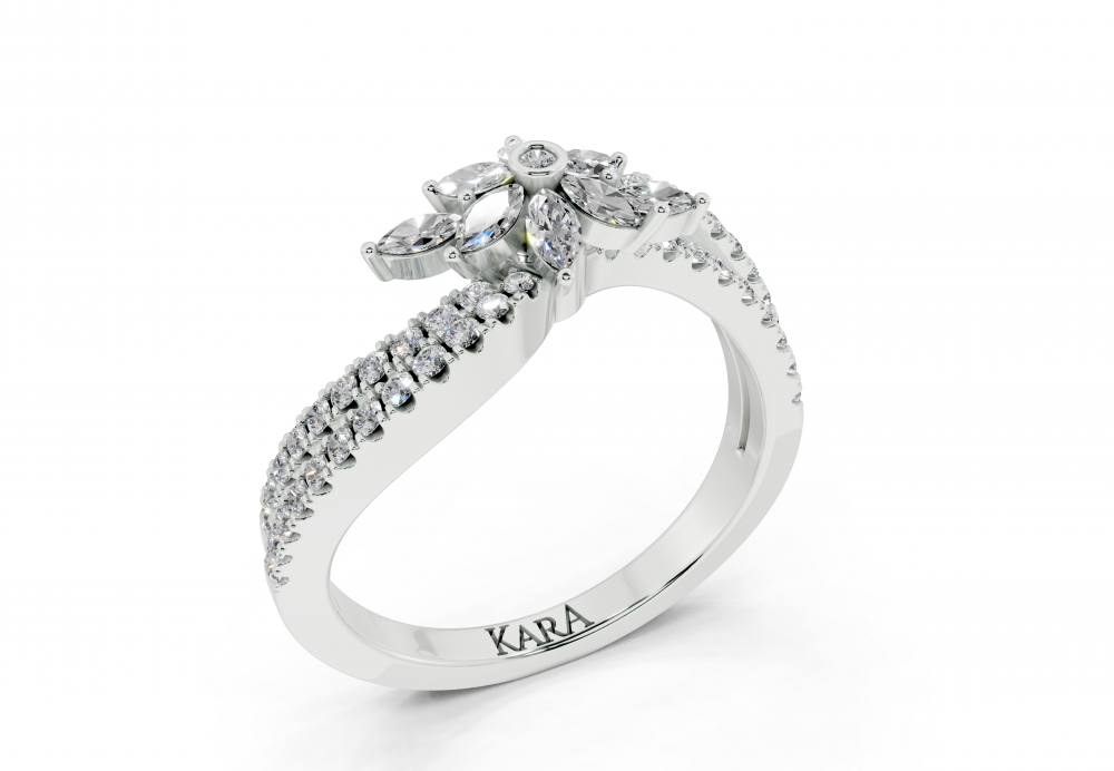 Inel din aur alb de 14K, cu diamante Marquise Cut de 0.19ct si diamante rotunde de 0.28ct. Greutatea inelului este de aproximativ 4.50 grame. Accesati "Specificatii" pentru mai multe detalii acest produs.