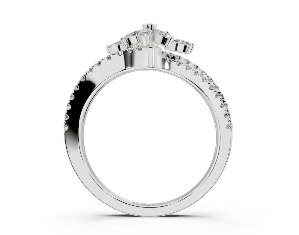 Inel din aur alb de 14K, cu diamante Marquise Cut de 0.19ct si diamante rotunde de 0.28ct. Greutatea inelului este de aproximativ 4 grame.