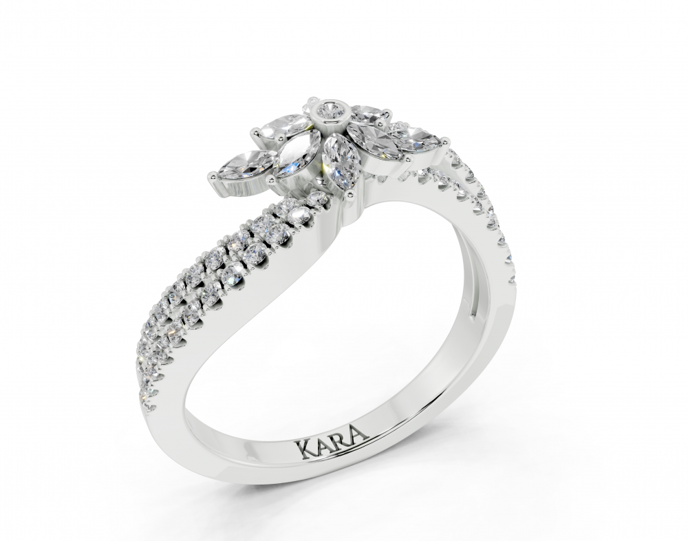 Inel din aur alb de 14K, cu diamante Marquise Cut de 0.19ct si diamante rotunde de 0.28ct. Greutatea inelului este de aproximativ 4 grame. Inelul se poate face pe comanda si din aur de 18K. Putem modifica design-ul in functie de bugetul dumneavoastra.