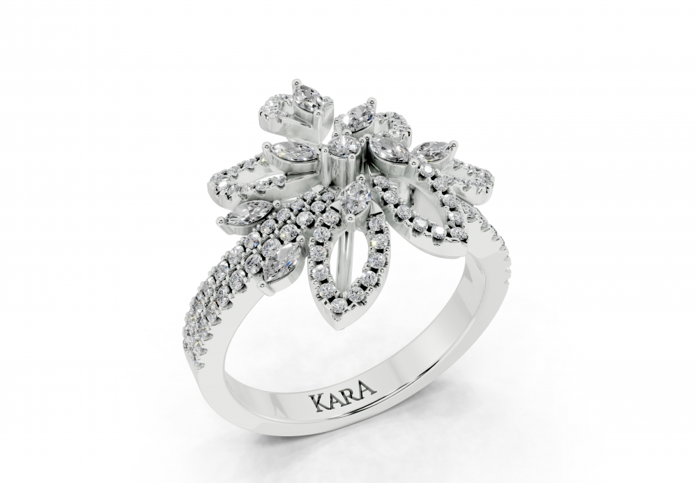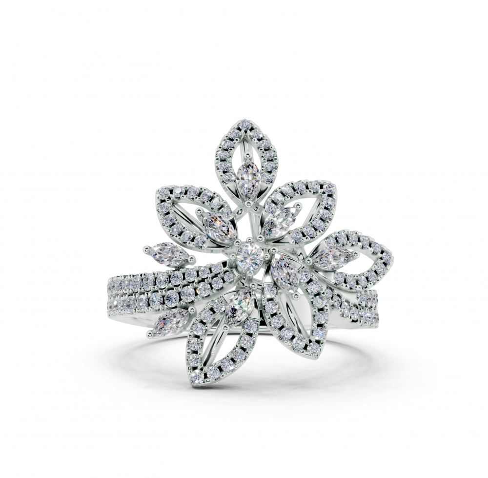 Inel din aur alb de 14K, cu diamante Marquise Cut de 0.19ct si diamante rotunde de 0.39ct. Greutatea inelului este de aproximativ 3 grame. Inelul se poate face pe comanda si din aur de 18K. Putem modifica design-ul in functie de bugetul dumneavoastra.