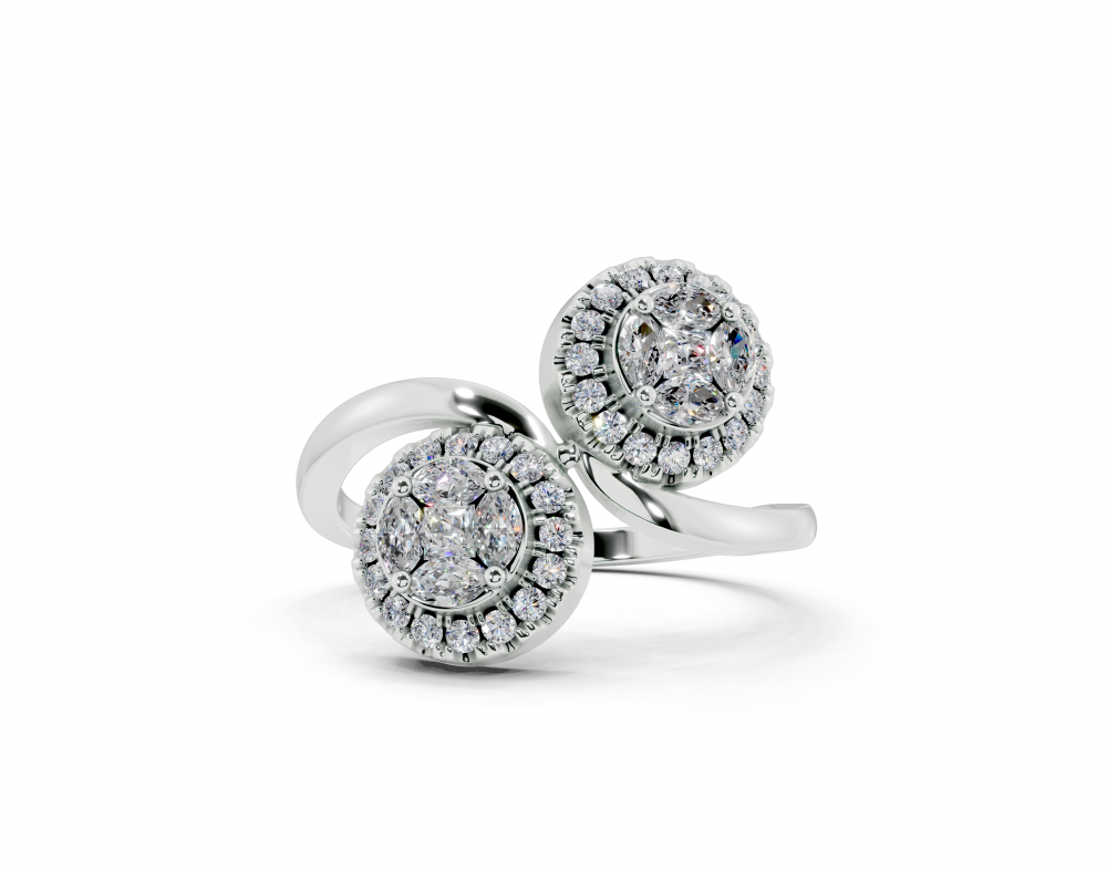 Inel din aur alb de 14K, cu diamante Marquise Cut de 0.20ct, diamante Princess Cut de 0.10ct si diamante rotunde de 0.21ct. Greutatea inelului este de aproximativ 4 grame. Inelul se poate face pe comanda si din aur de 18K. Putem modifica design-ul in functie de bugetul dumneavoastra....