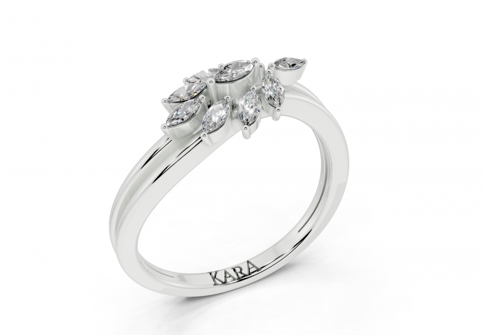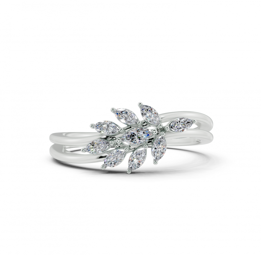 Inel din aur alb de 14K, cu diamante Marquise Cut de 0.21ct. Greutatea inelului este de aproximativ 2.00 grame.