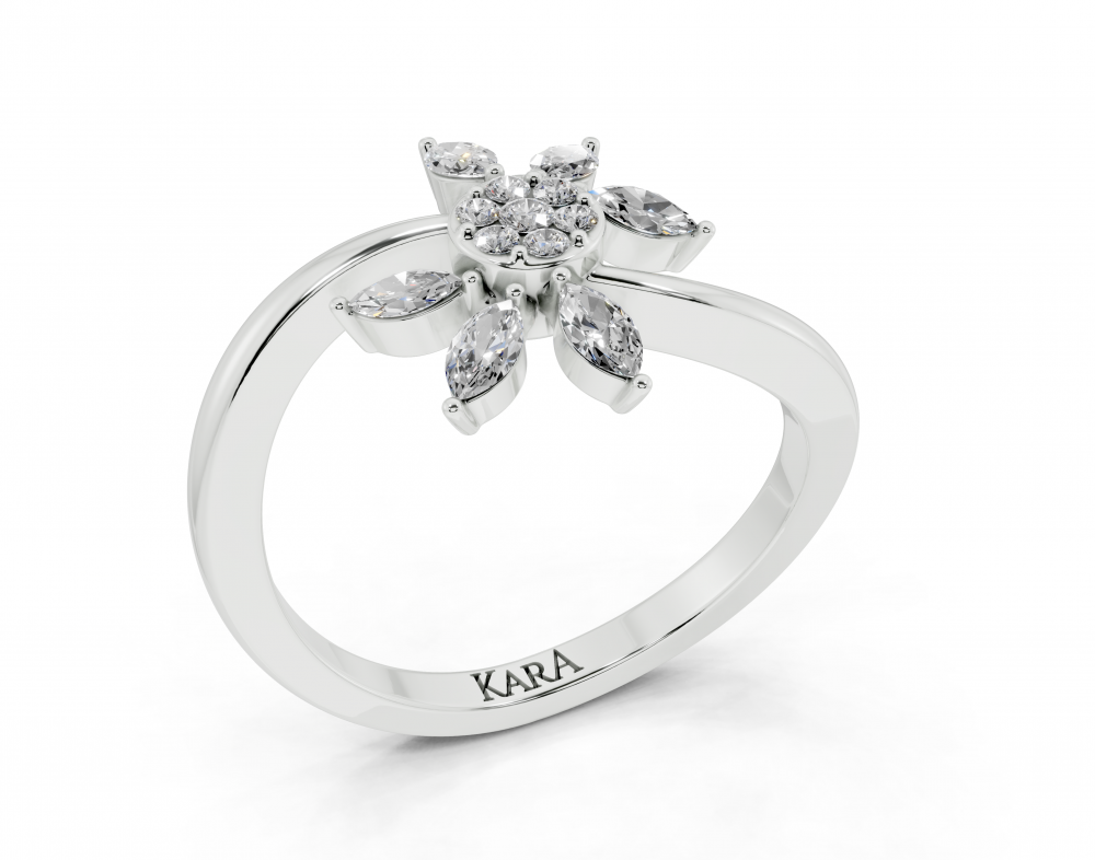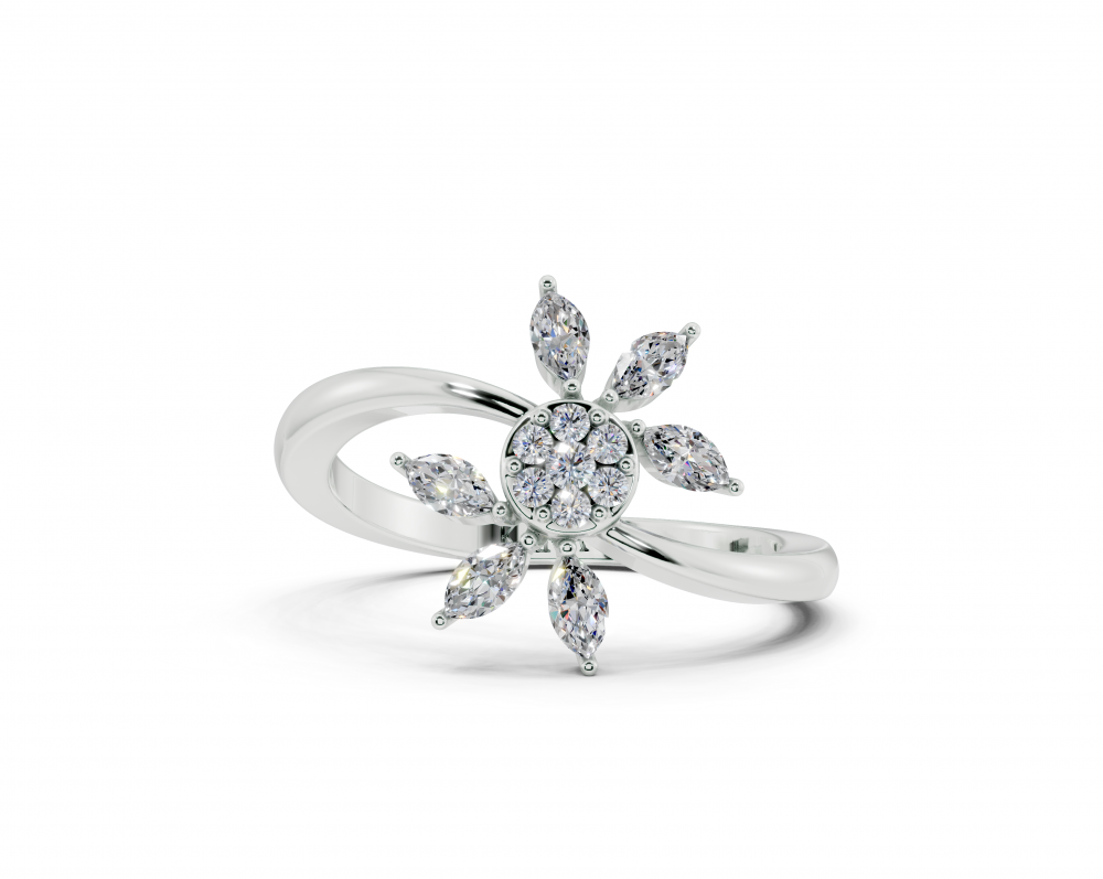 Inel din aur alb de 14K, cu diamante Marquise Cut de 0.22 ct si diamante rotunde de 0.07 ct. Greutatea inelului este de aproximativ 2,50 grame.