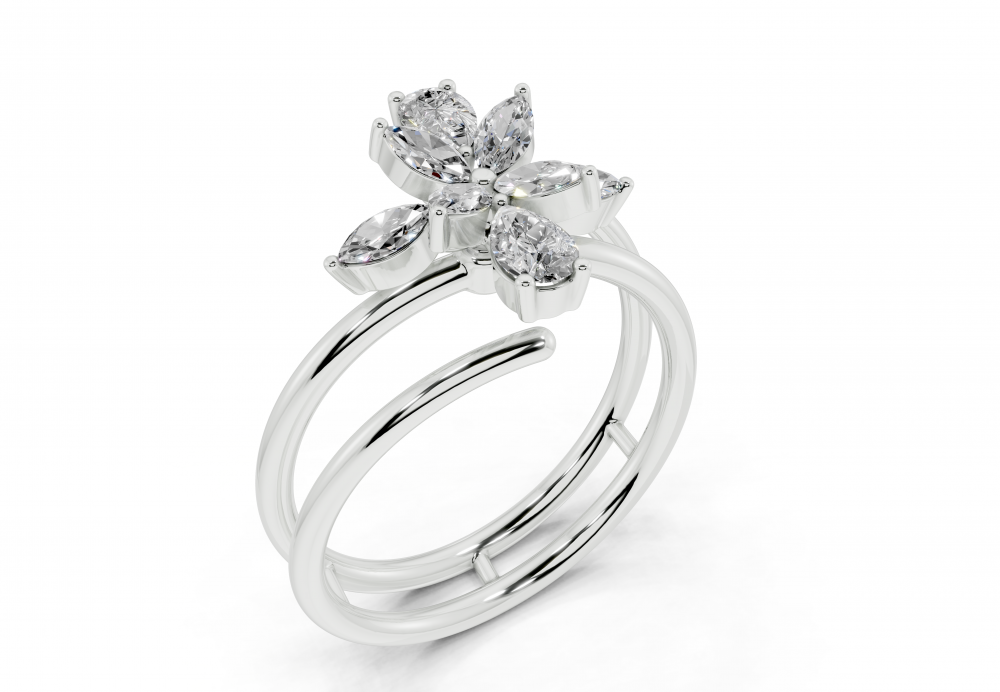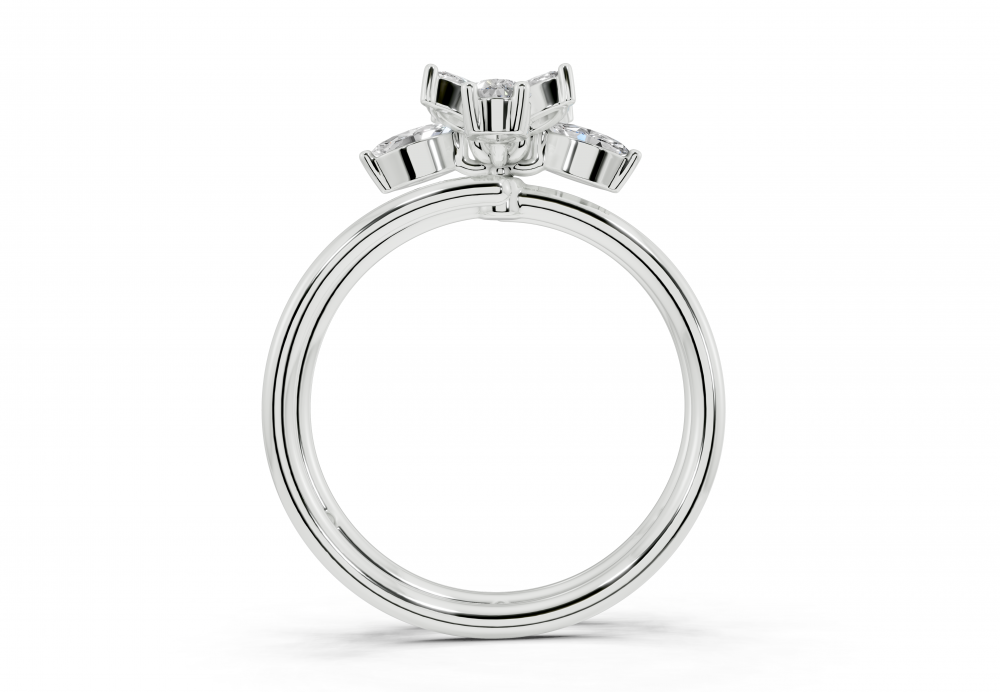 Inel din aur alb de 14K, cu diamante Marquise Cut de 0.22ct si diamante Pear Cut de 0.17ct. Greutatea inelului este de aproximativ 2.50 grame.