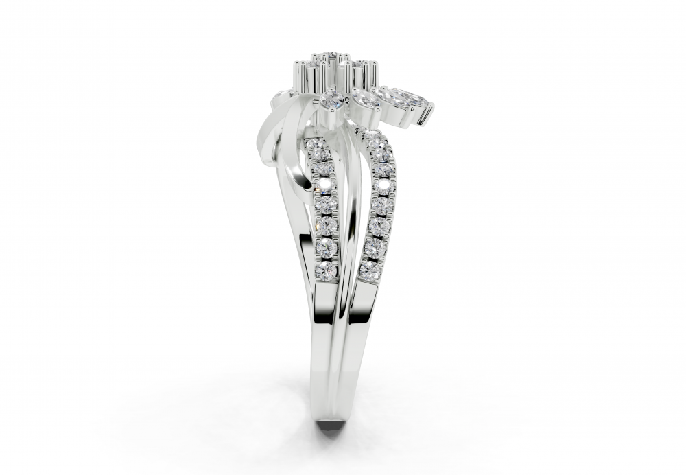 Inel din aur alb de 14K, cu diamante Marquise Cut de 0.22ct si diamante rotunde de 0.34ct. Greutatea inelului este de aproximativ 3.50 grame.