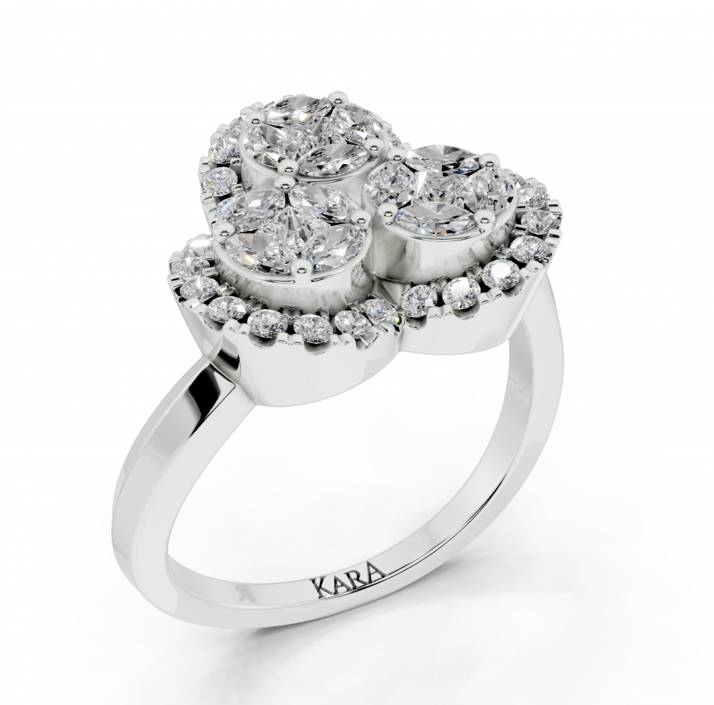 Inel din aur alb de 14K, cu diamante Marquise Cut de 0.30ct, diamante Princess Cut de 0.14ct si diamante rotunde de 0.22ct. Greutatea inelului este de aproximativ 5.30 grame. Inelul se poate face pe comanda si din aur de 18K. Putem modifica design-ul in functie de bugetul dumneavoastra.