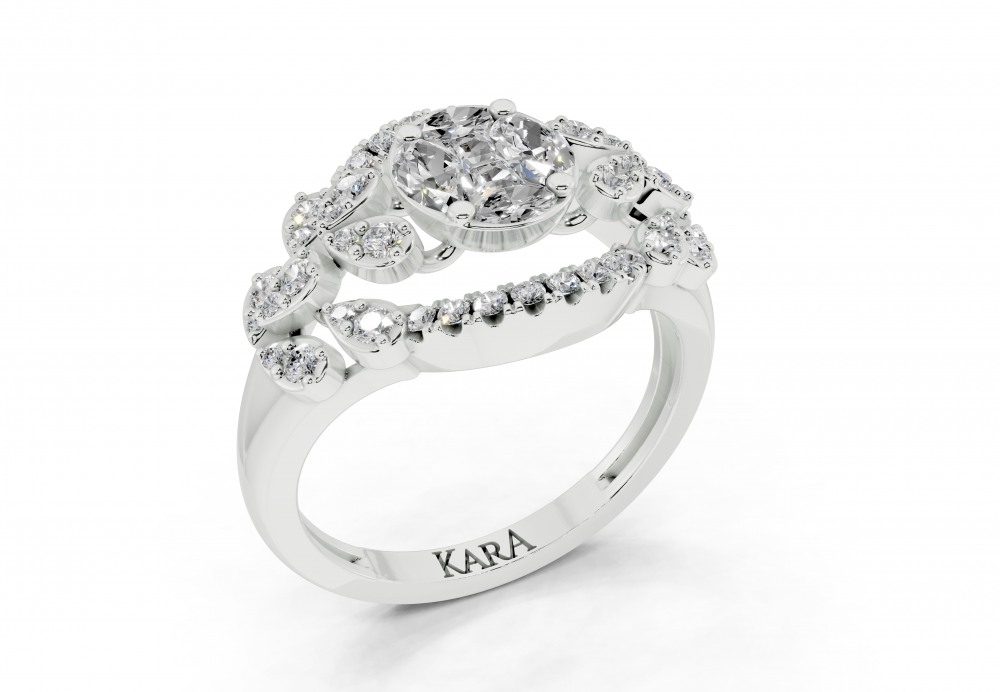 Inel din aur alb de 14K, cu diamante Marquise Cut de 0.31ct, diamante Princess Cut de 0.07ct si diamante rotunde de 0.33ct. Greutatea inelului este de aproximativ 5.00 grame. Inelul se poate face pe comanda si din aur de 18K. Putem modifica design-ul in functie de bugetul dumneavoastra.