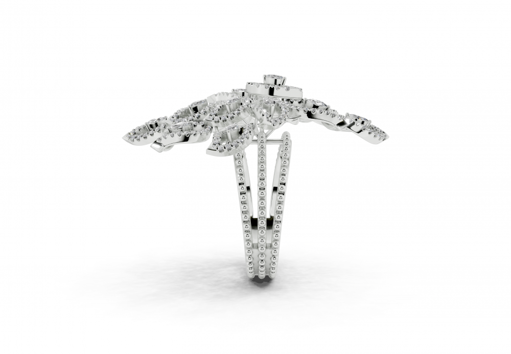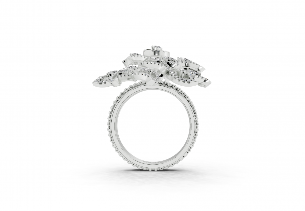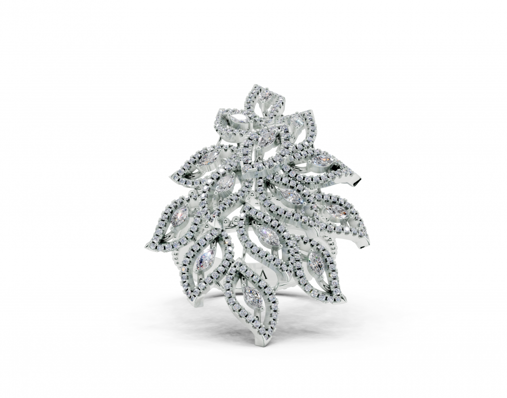 Inel din aur alb de 14K, cu diamante Marquise Cut de 0.31 ct. si diamante Rotunde de 0.55 ct. Greutatea inelului este de aproximativ 12 grame.