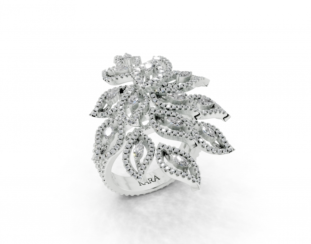 Inel din aur alb de 14K, cu diamante Marquise Cut de 0.33ct si diamante rotunde de 0.63ct. Greutatea inelului este de aproximativ 6 grame. Inelul se poate face pe comanda si din aur de 18K. Putem modifica design-ul in functie de bugetul dumneavoastra.