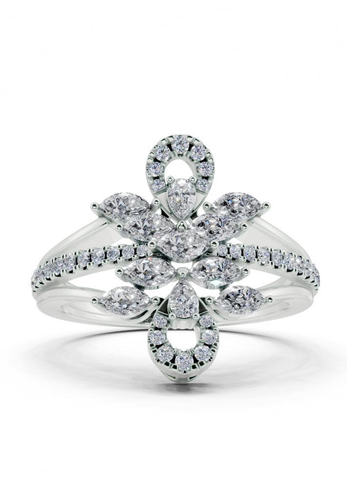 Inel din aur alb de 14K, cu diamante Marquise Cut de 0.34ct, diamante Pear Cut de 0.08ct si diamante rotunde de 0.17ct. Greutatea inelului este de aproximativ 4 grame. Inelul se poate face pe comanda si din aur de 18K. Putem modifica design-ul in functie de bugetul dumneavoastra.