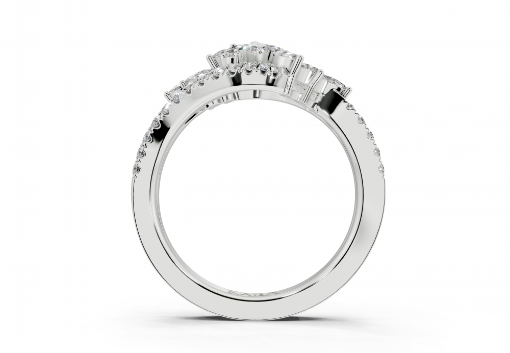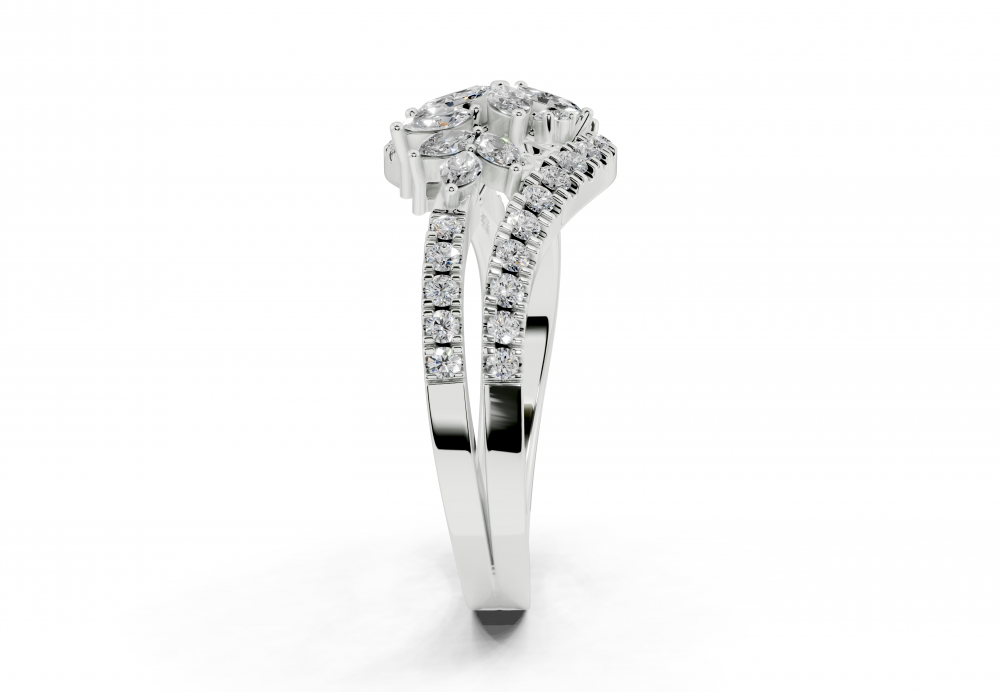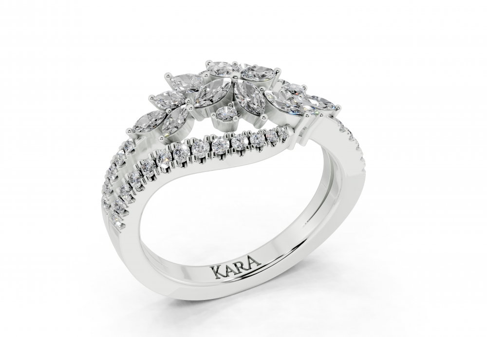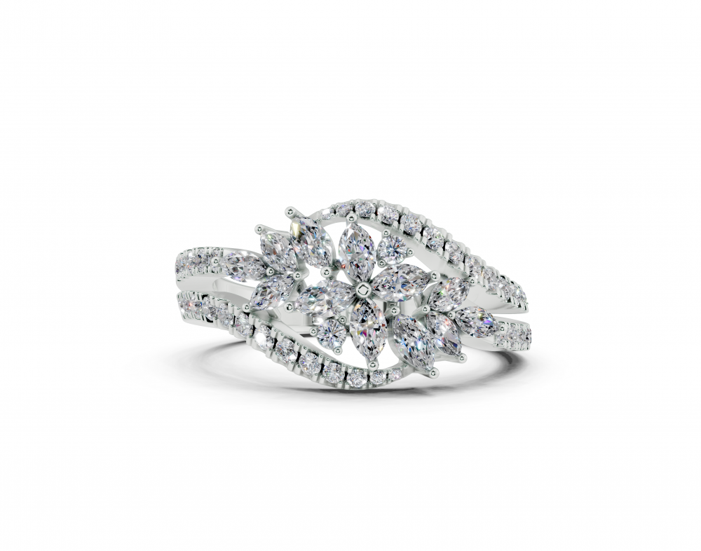 Inel din aur alb de 14K, cu diamante Marquise Cut de 0.36ct si diamante rotunde de 0.31ct. Greutatea inelului este de aproximativ 4 grame.