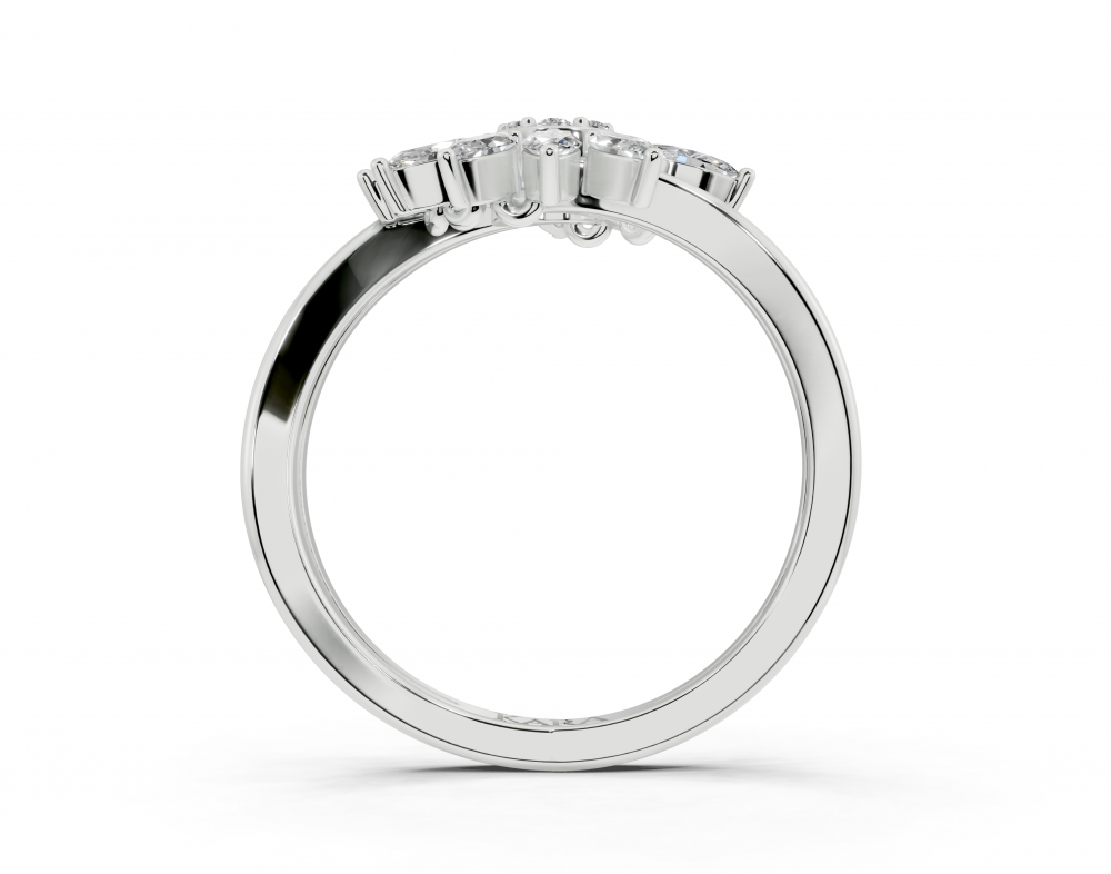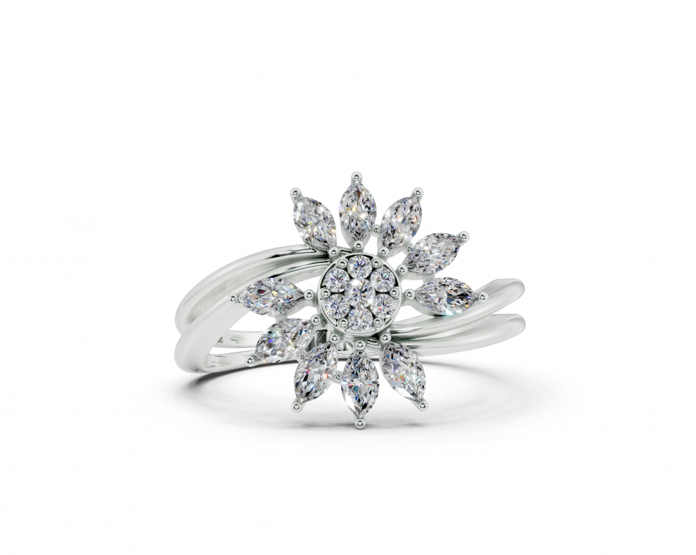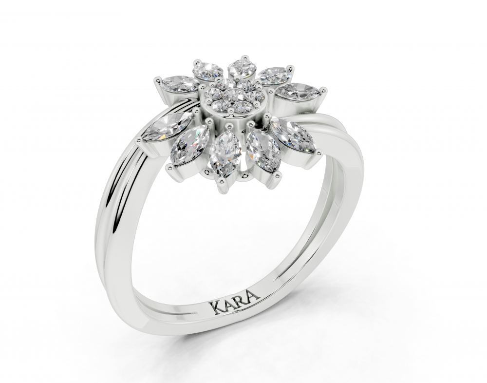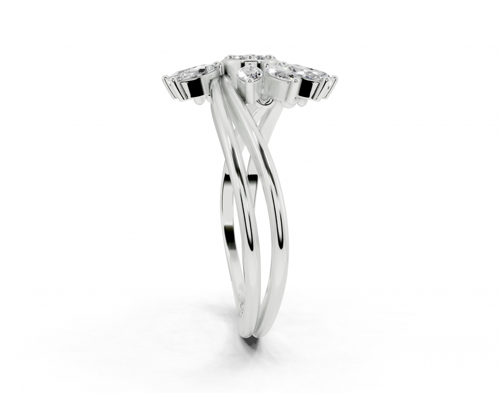 Inel din aur alb de 14K, cu diamante Marquise Cut de 0.37 ct si diamante rotunde de 0.06 ct. Greutatea inelului este de aproximativ 3,00 grame.