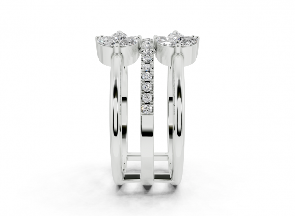 Inel din aur alb de 14K, cu diamante Marquise Cut de 0.45ct si diamante rotunde de 0.14ct. Greutatea inelului este de aproximativ 5 grame. Inelul se poate face pe comanda si din aur de 18K. Putem modifica design-ul in functie de bugetul dumneavoastra.