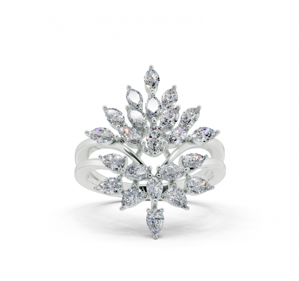 Inel din aur alb de 14K, cu diamante Marquise Cut de 0.48ct si diamante Pear Cut de 0.51ct. Greutatea inelului este de aproximativ 4 grame. Inelul se poate face pe comanda si din aur de 18K. Putem modifica design-ul in functie de bugetul dumneavoastra.