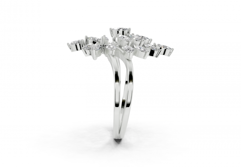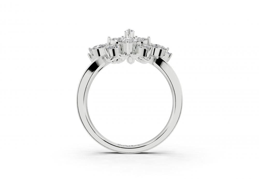 Inel din aur alb de 14K, cu diamante Marquise Cut de 0.48ct si diamante Pear Cut de 0.51ct. Greutatea inelului este de aproximativ 4 grame.