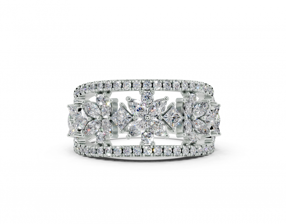 Inel din aur alb de 14K, cu diamante Marquise Cut de 0.50ct, diamante Princess Cut de 0.36ct si diamante rotunde de 0.45ct. Greutatea inelului este de aproximativ 5 grame. Inelul se poate face pe comanda si din aur de 18K. Putem modifica design-ul in functie de bugetul dumneavoastra.