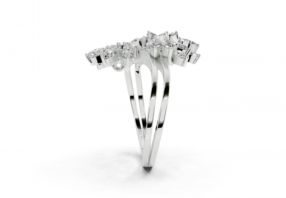 Inel din aur alb de 14K, cu diamante Marquise Cut de 0.52ct, diamante Pear Cut de 0.31ct si diamante rotunde de 0.11ct. Greutatea inelului este de aproximativ 4.50 grame. Inelul se poate face pe comanda si din aur de 18K. Putem modifica design-ul in functie de bugetul dumneavoastra.