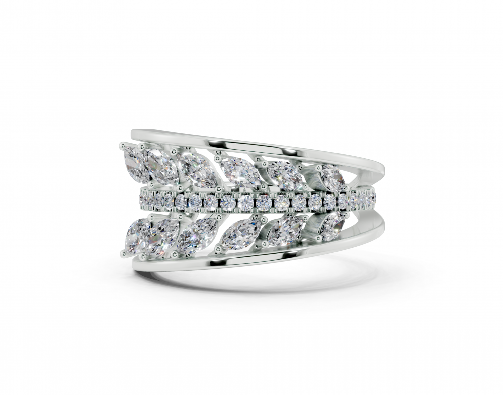 Inel din aur alb de 14K, cu diamante Marquise Cut de 0.53ct si diamante rotunde de 0.14ct. Greutatea inelului este de aproximativ 4.50 grame. Inelul se poate face pe comanda si din aur de 18K. Putem modifica design-ul in functie de bugetul dumneavoastra.