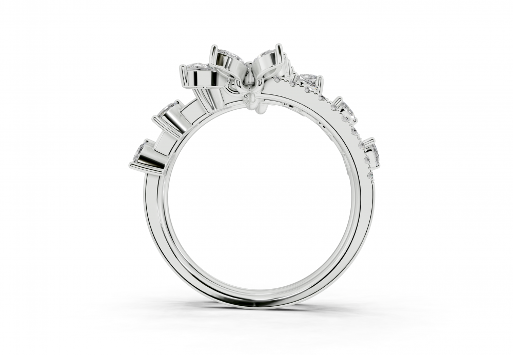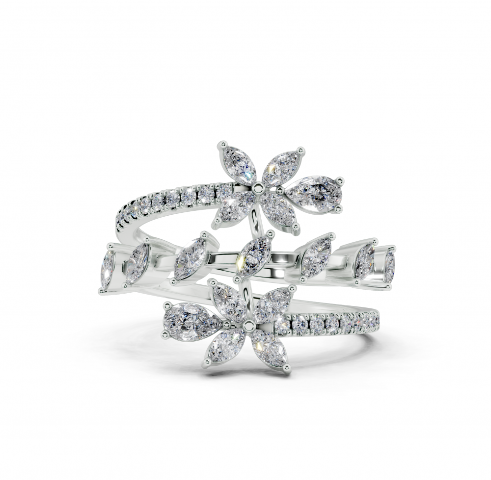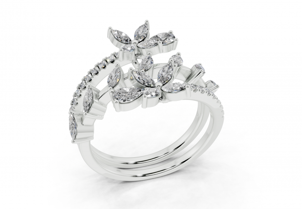 Inel din aur alb de 14K, cu diamante Marquise Cut de 0.55ct, diamante Pear Cut de 0.17ct si diamante rotunde de 0.13ct. Greutatea inelului este de aproximativ 4.00 grame. Inelul se poate face pe comanda si din aur de 18K. Putem modifica design-ul in functie de bugetul dumneavoastra.