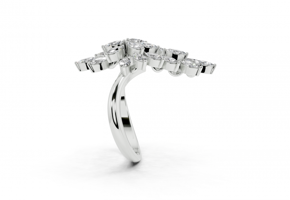 Inel din aur alb de 14K, cu diamante Marquise Cut de 0.95ct si diamante rotunde de 0.02ct. Greutatea inelului este de aproximativ 4.50 grame.