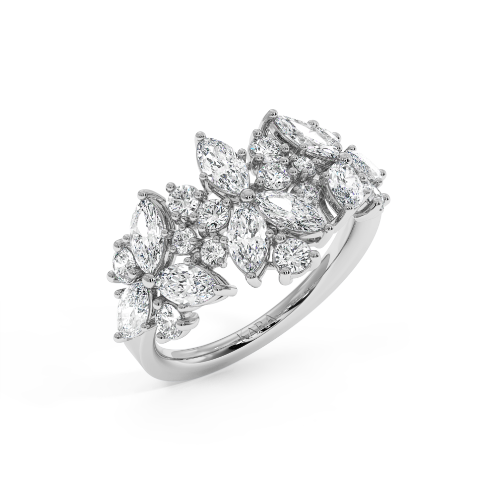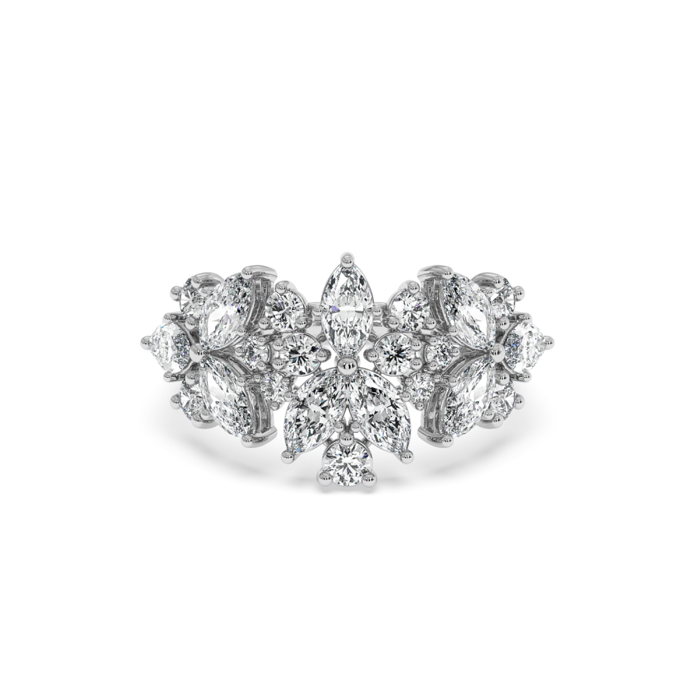 Inel din aur alb de 18K, cu diamant central Marquise Cut de 1.55 ct si diamante rotunde de 0.56 ct. Greutatea inelului este de aproximativ 5.27 grame. Inelul se poate face pe comanda si din aur de 14K. Putem modifica design-ul in functie de bugetul dumneavoastra.