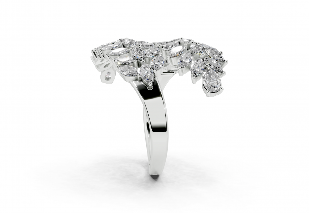 Inel din aur alb de 14K, cu diamante Marquise Cut de 1.57ct si diamante Pear Cut de 0.17ct. Greutatea inelului este de aproximativ 5 grame. Inelul se poate face pe comanda si din aur de 18K. Putem modifica design-ul in functie de bugetul dumneavoastra.