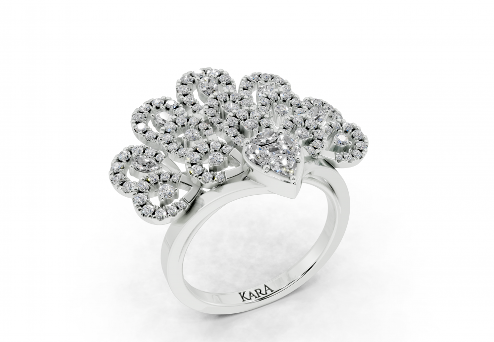 Inel din aur alb de 14K, cu diamante Marquise de 0.07 ct , Diamante Pear de 0.20 ct si diamante Rotunde de 0.73 ct. Greutatea inelului este de aproximativ 8.00 grame. Accesati "Specificatii" pentru mai multe detalii despre acest produs.